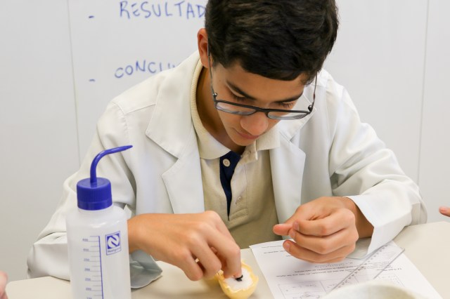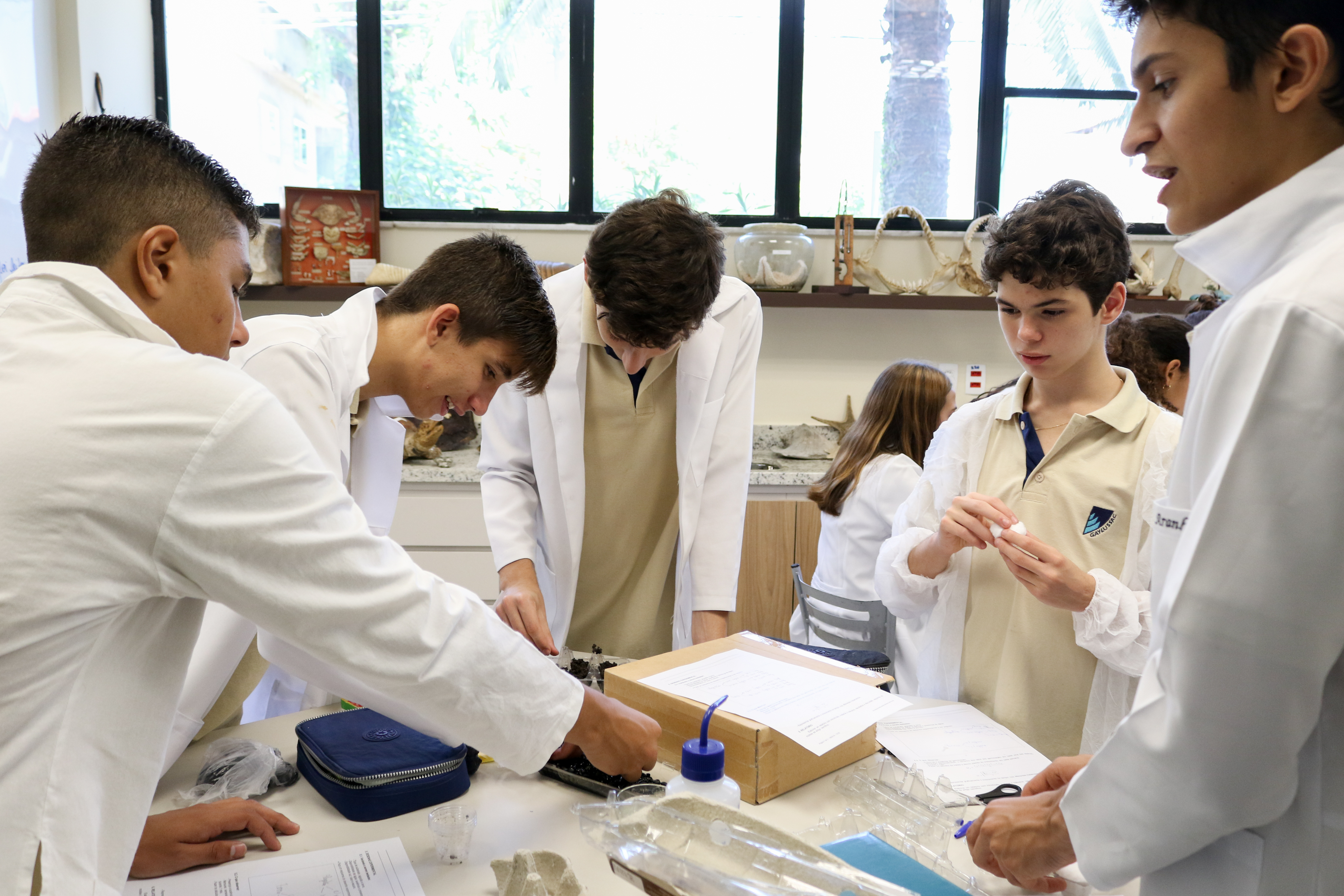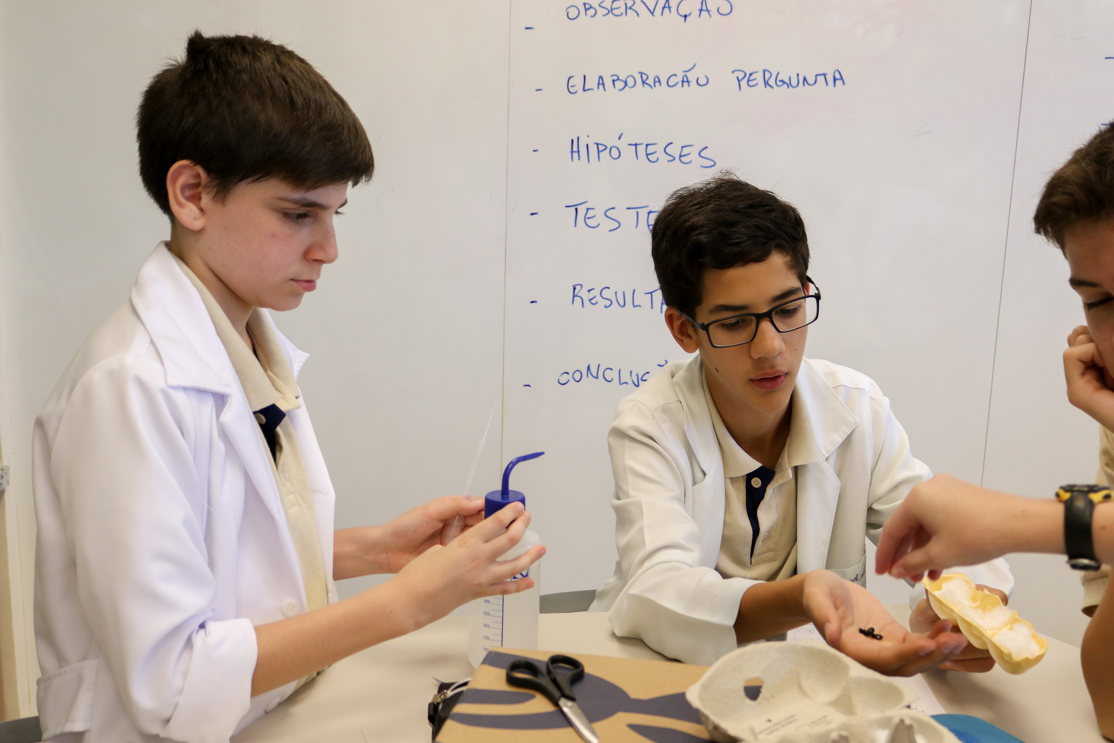 Observar, elaborar a pergunta, criar e testar uma hipótese, analisar resultados. A aplicação do Método Científico, através da construção de raciocínio lógico, permite ao pesquisador a elaboração de argumentos sólidos. Por isso, em fevereiro, os alunos da 1ª série do Ensino Médio foram até o Laboratório de Multiciências dar início à uma pesquisa científica. Nas aulas de Biologia, eles elaboraram projetos e fizeram experimentos com feijões. Houve germinação? Cresceu mais? Por que não cresceu? O que concluir? Para resolverem essas questões os alunos irão passar três semanas observando a germinação e o crescimento de suas sementes e depois comparar os resultados.