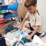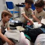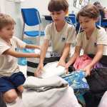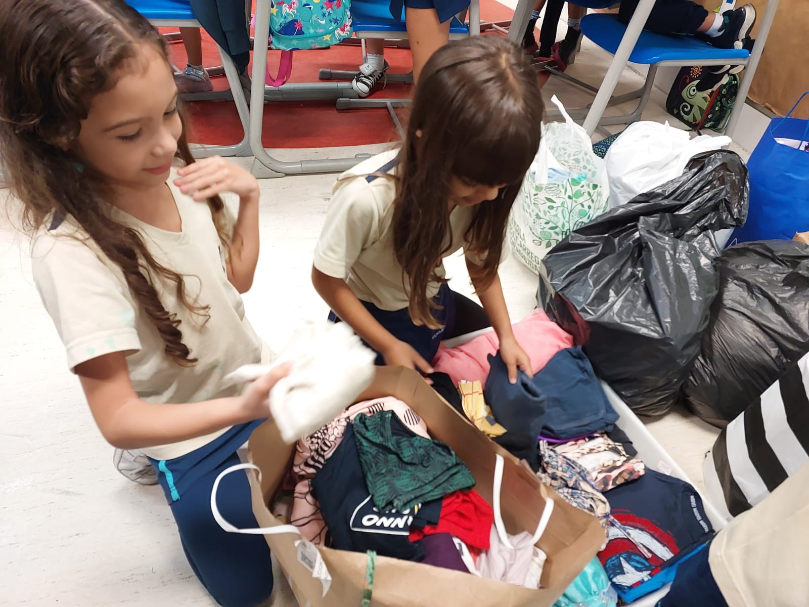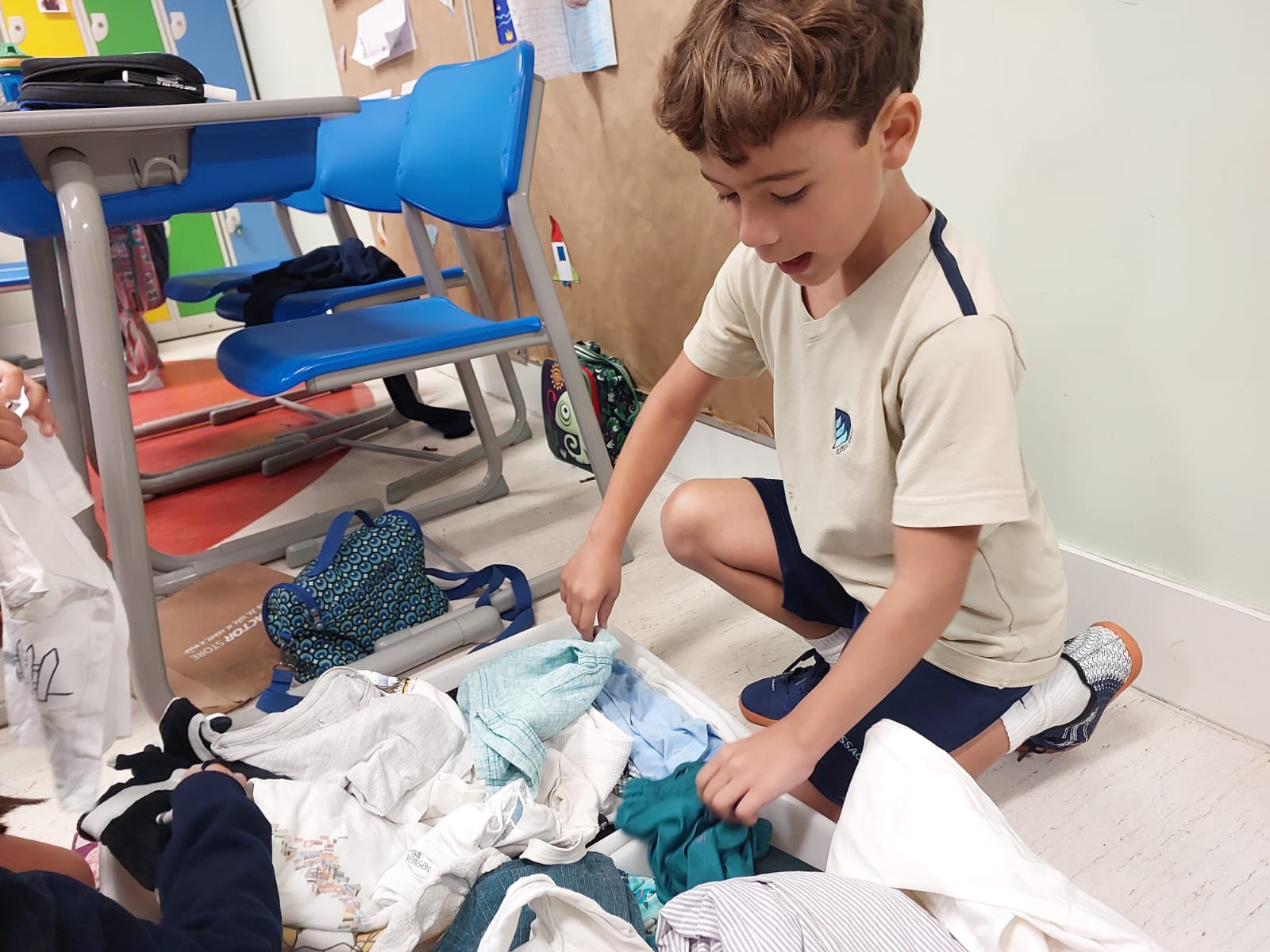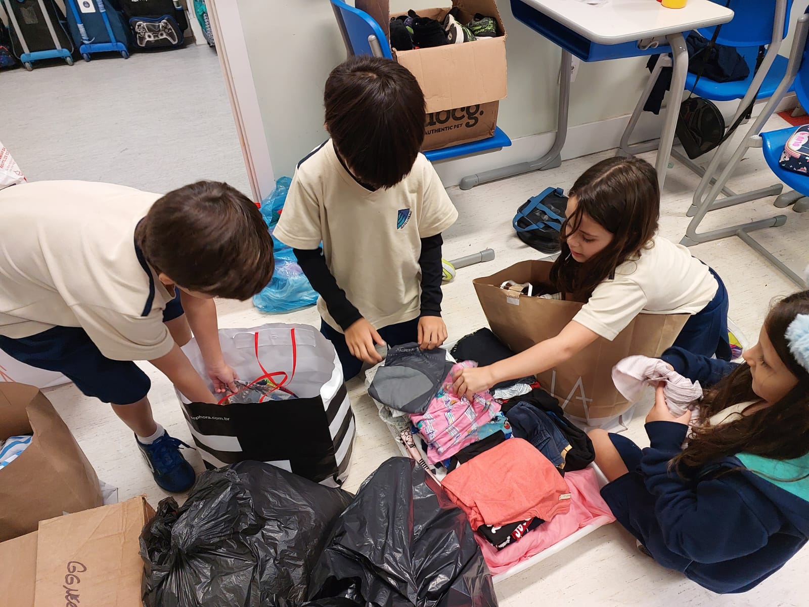 A professora Juliana Oliveira explica: “Arrecadamos roupas e sapatos, em bom estado, para doar ao projeto. As crianças passaram nas salas do primeiro 1° ano e do Grupo 5 divulgando a ação, recebemos doação de outras turmas e juntamos tudo isso, fizemos um mutirão com os alunos da turma, onde dobramos e embalamos as roupas. em cada pacote enviamos recadinhos produzidos pelas próprias crianças”.