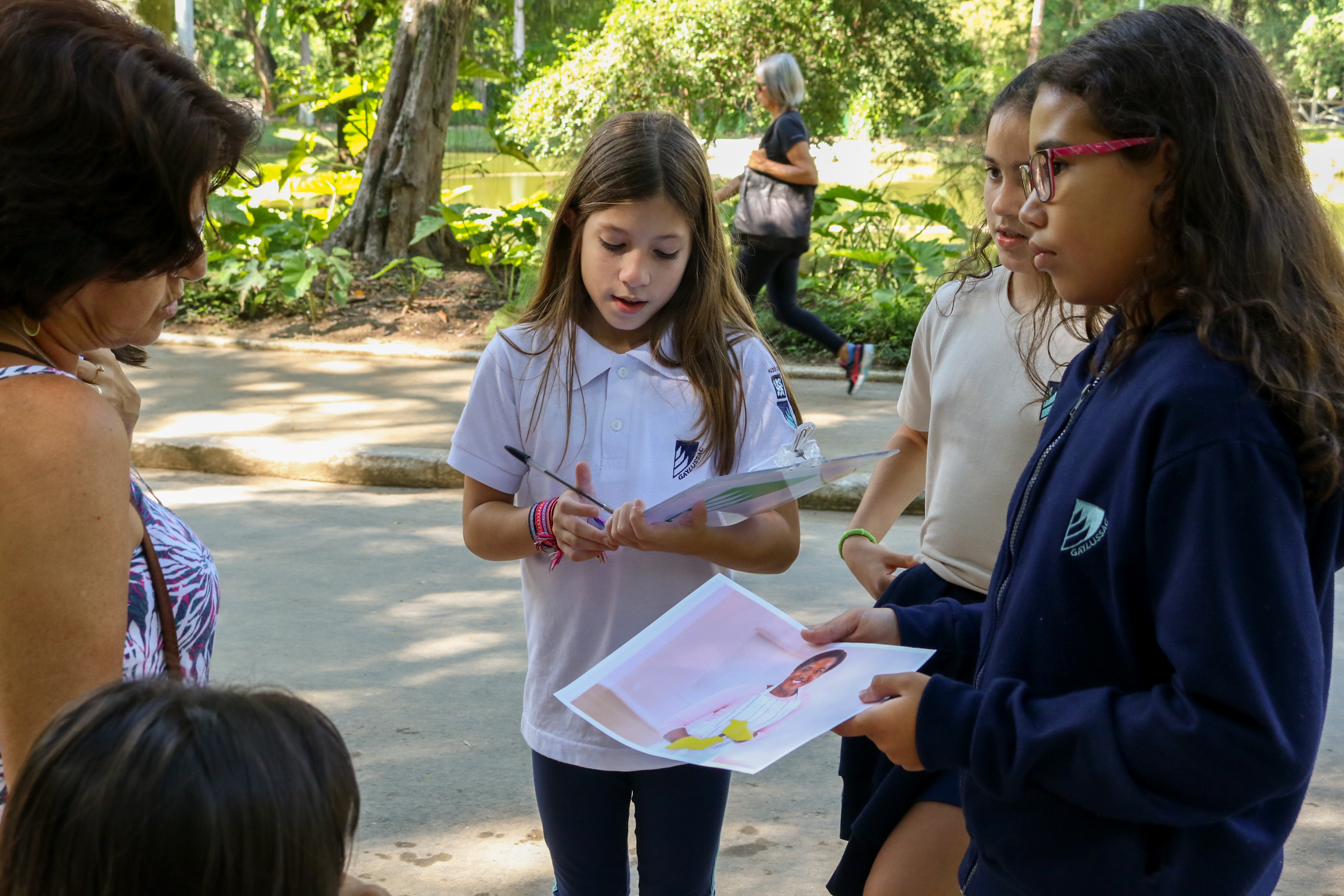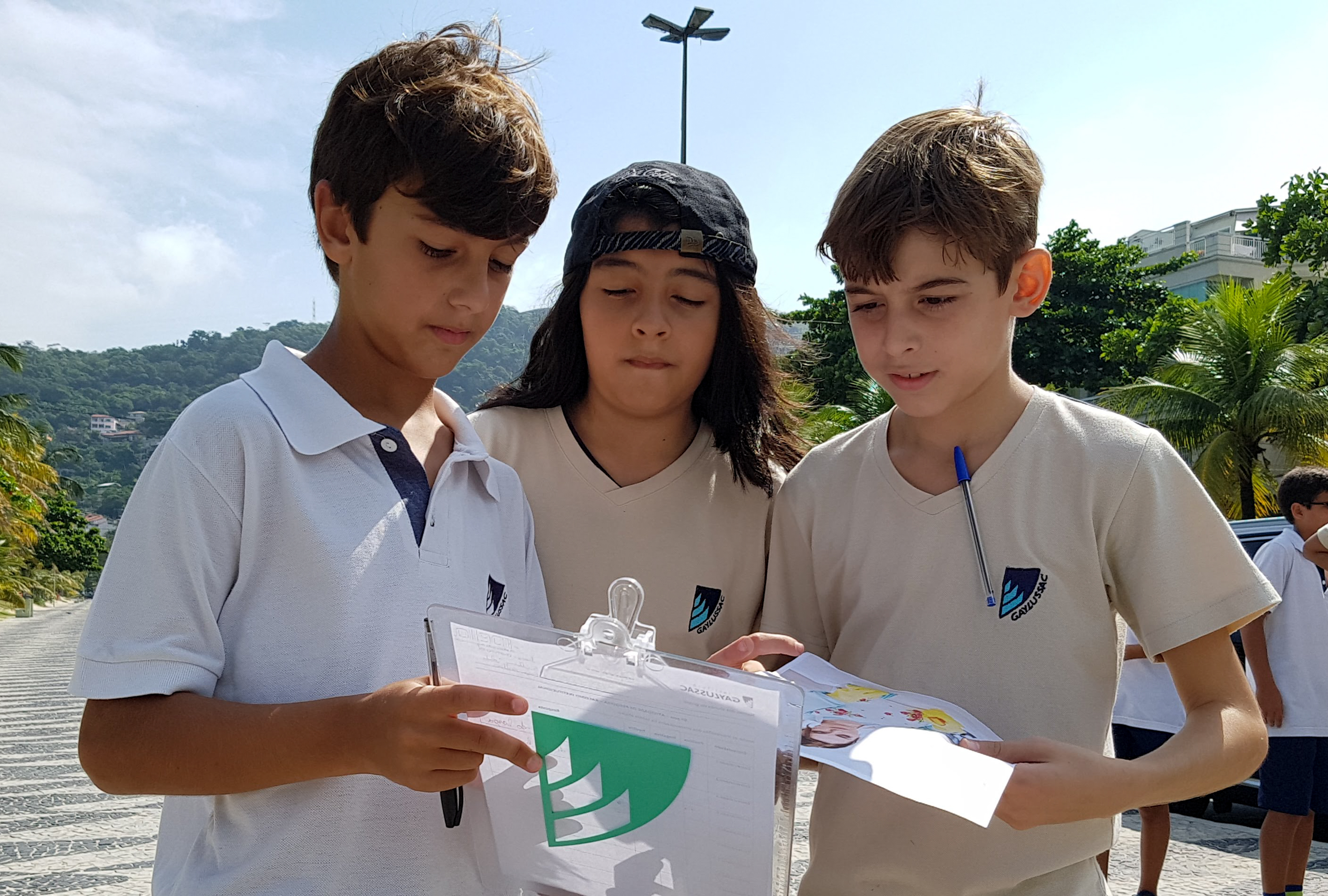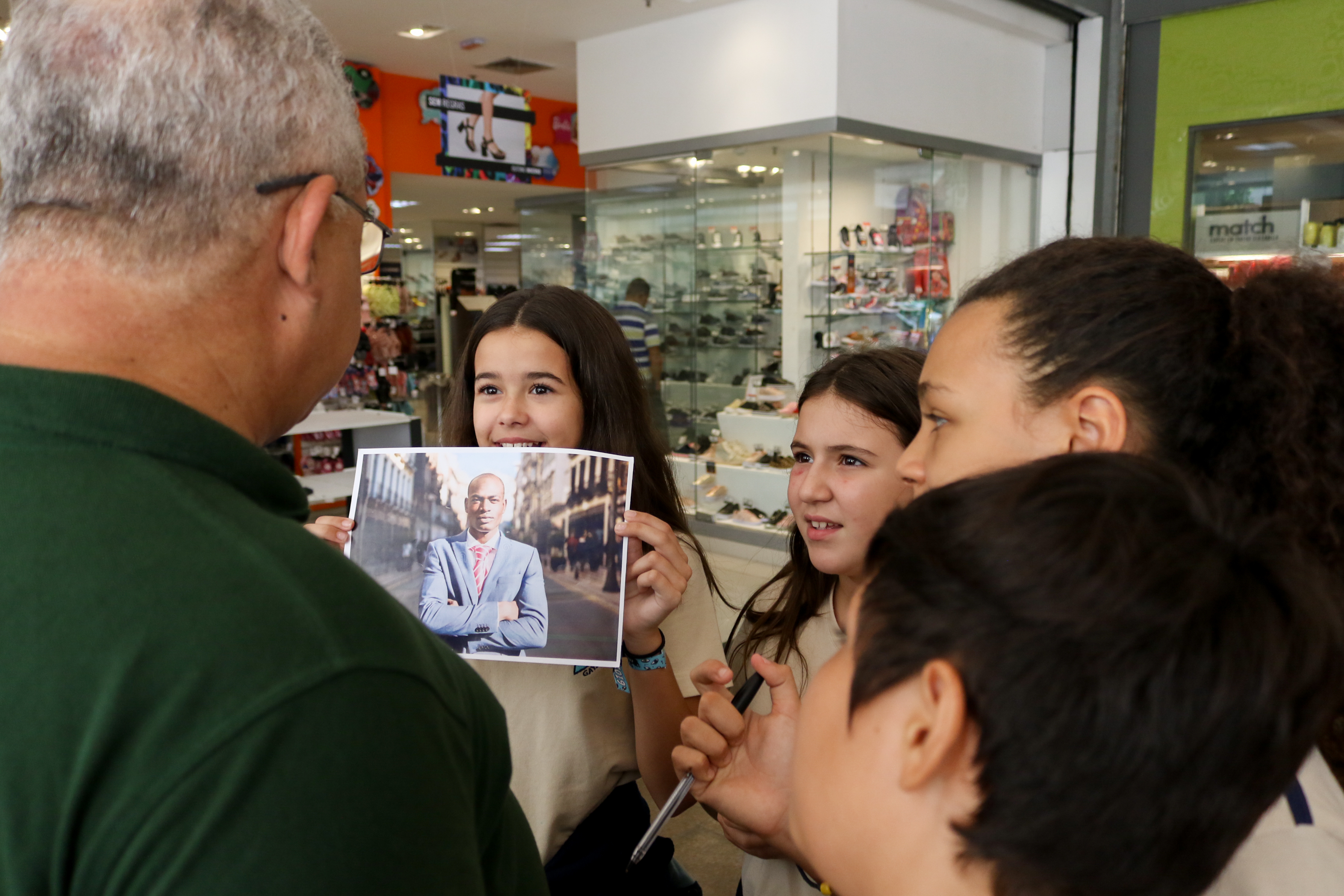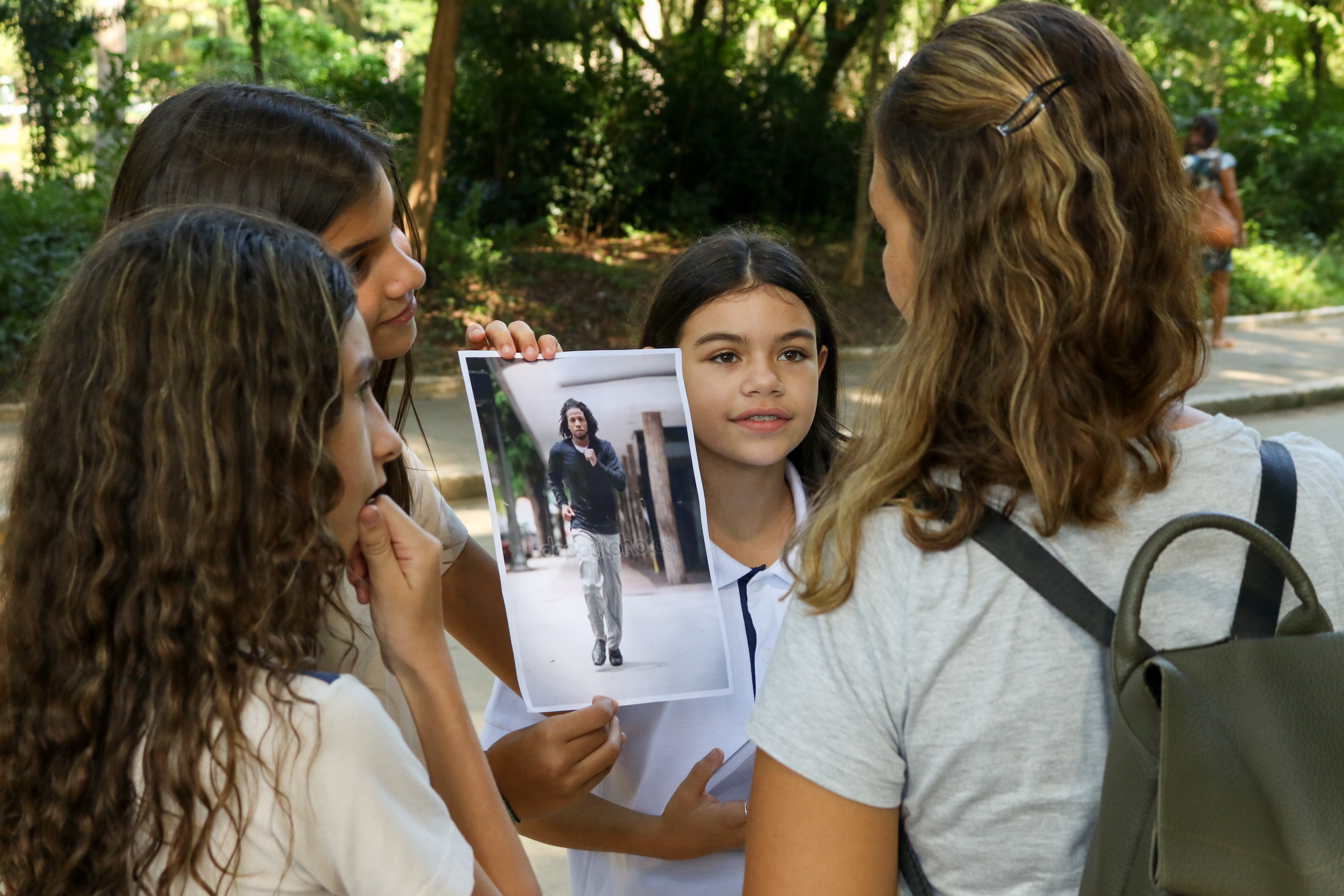 A proposta foi levar essa pesquisa a campo. Cada turma recebeu uma imagem, um questionário e a missão de fazer 10 entrevistas. Com prancheta na mão, os alunos visitaram vários locais de Niterói e colheram uma amostragem de mais de 400 entrevistas com uma pergunta bem aberta: “O que você vê nessa imagem?”. O objetivo era fazer um teste do racismo nos moldes da experiência do vídeo.