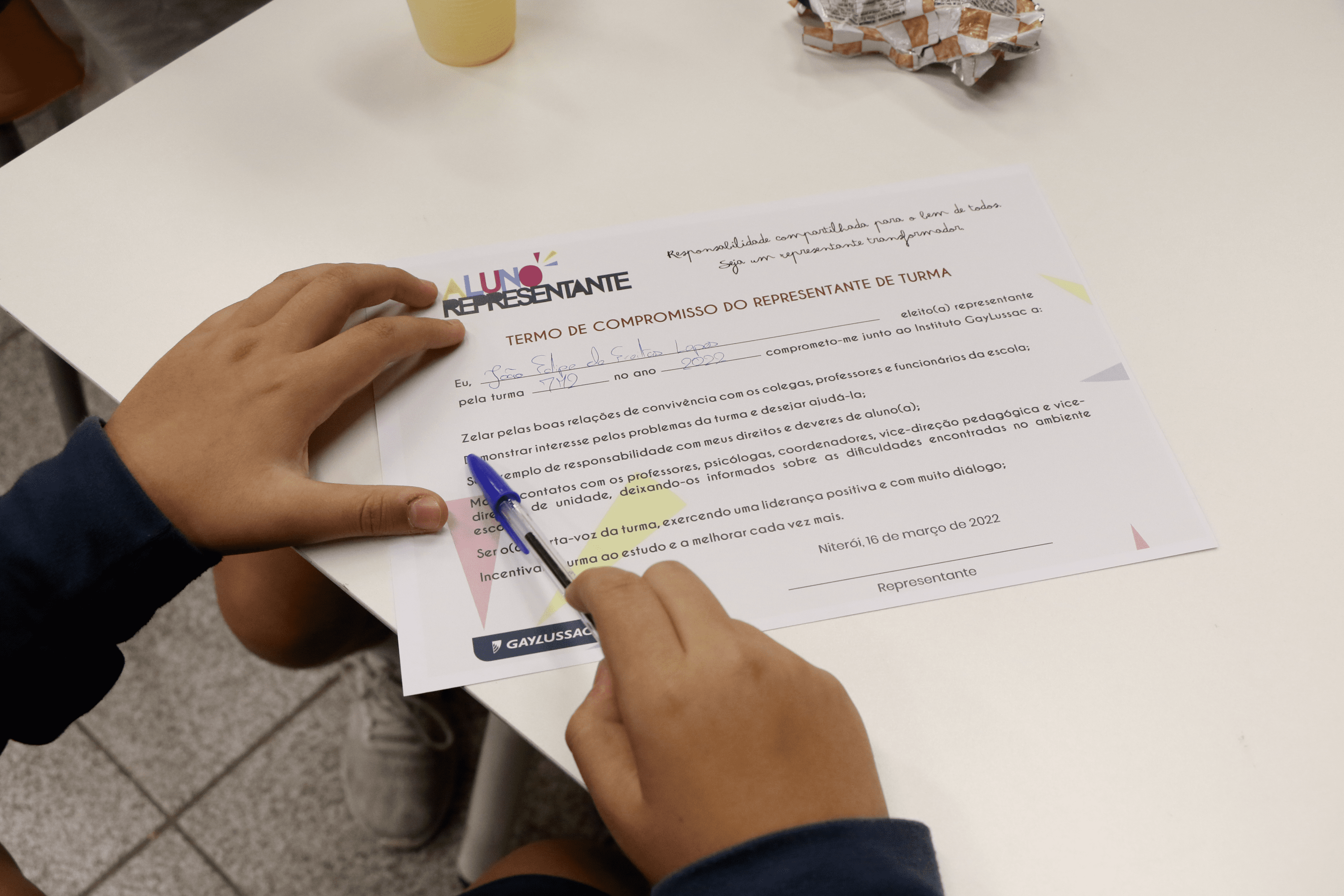 O Projeto Aluno Representante é uma iniciativa que envolve nossos alunos e incentiva a formação de lideranças ativas que ajudam na mediação entre a turma e a equipe pedagógica. As turmas iniciaram o projeto com interação inspirada por perguntas da equipe de Psicologia da escola. E, no dia 16 de março, os representantes das turmas assumiram seu posto e assinaram um termo de compromisso para assumir sua nova função.