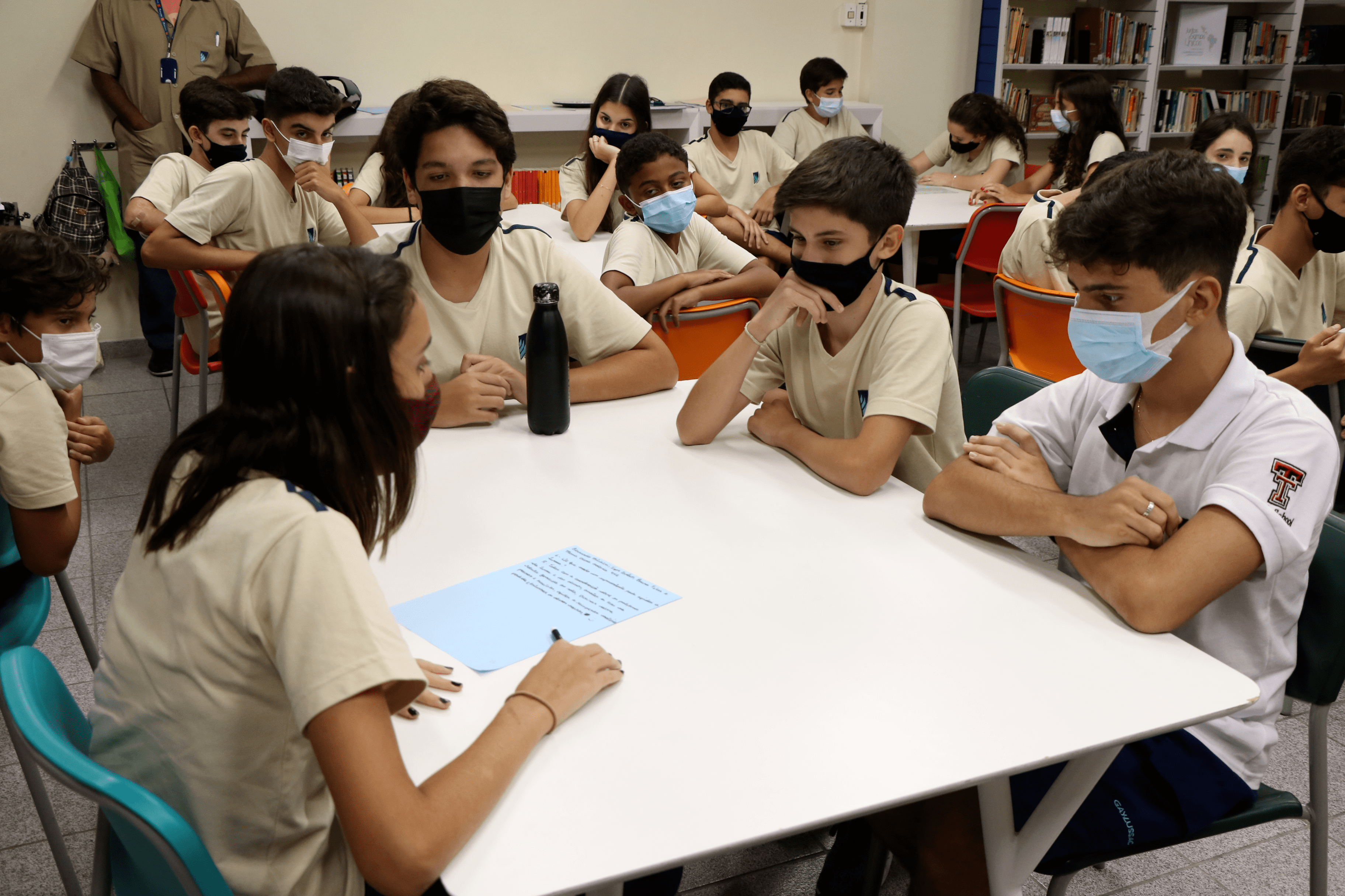 “Praticar dinâmicas em grupo é uma ação que aproxima os alunos uns dos outros. Construir respostas juntos e criar soluções para a convivência é uma experiência coletiva que os ajuda a escolher os candidatos e a votar no representante”.