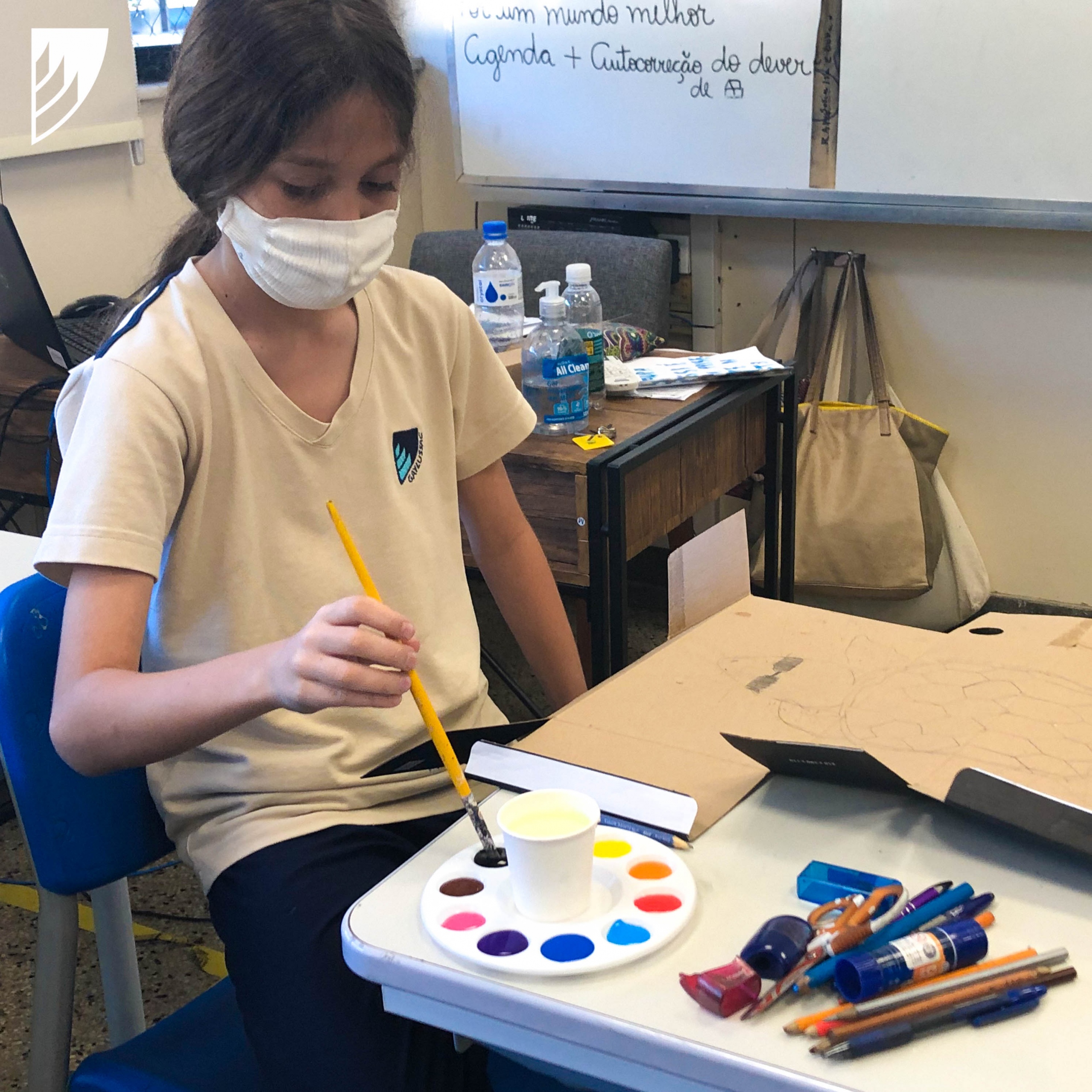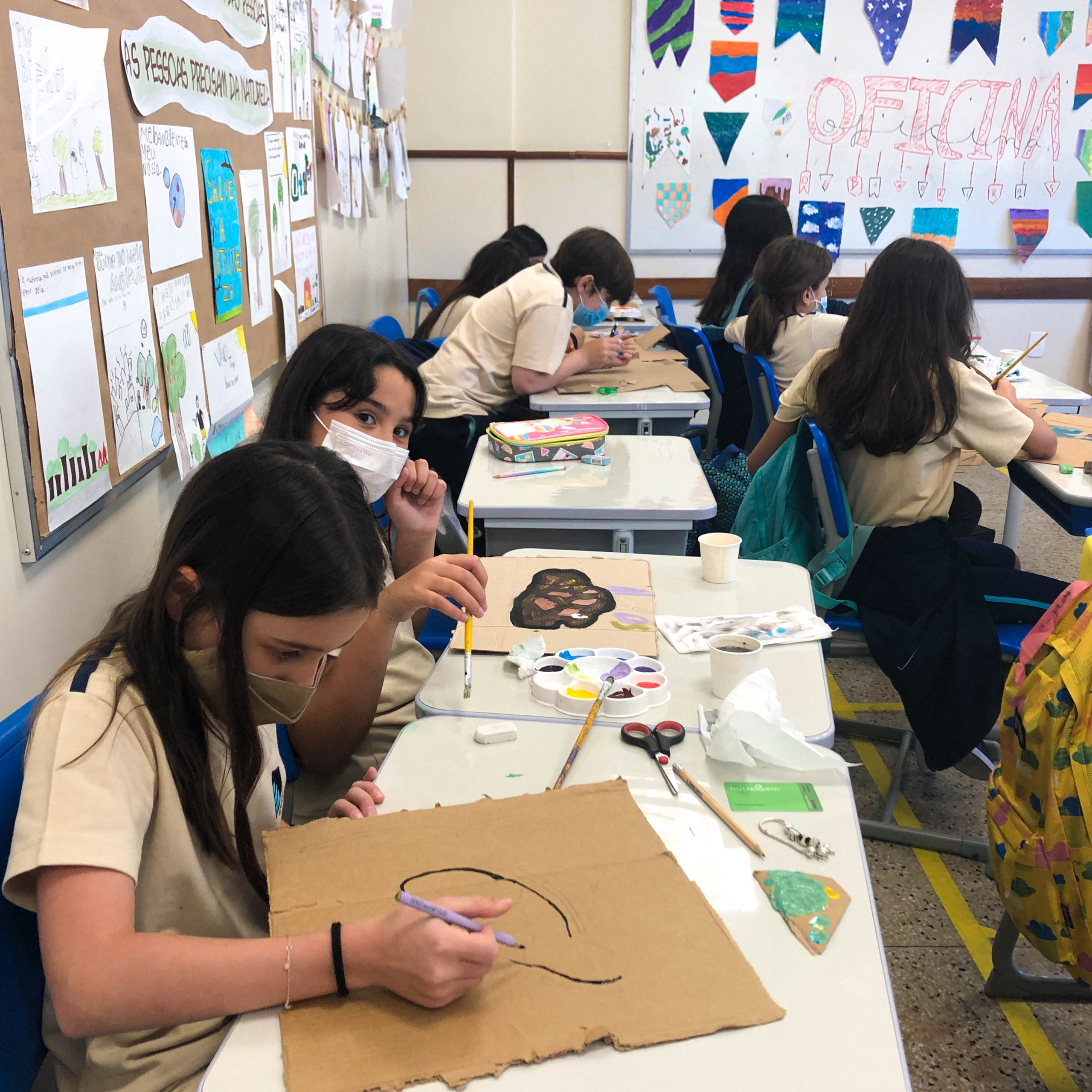 Os alunos da 5T3, por exemplo, mergulharam em projetos de preservação e conservação da biodiversidade marinha, como o Projeto Tamar, o Projeto Coral Vivo e o Projeto Meros do Brasil, e fizeram arte com materiais reutilizados inspirados em Felipe Guga. Já a 3T2 iniciou seu projeto “Detetives de Jardim” investigando a formação dos fósseis e construindo os seus próprios com argila e folhas.