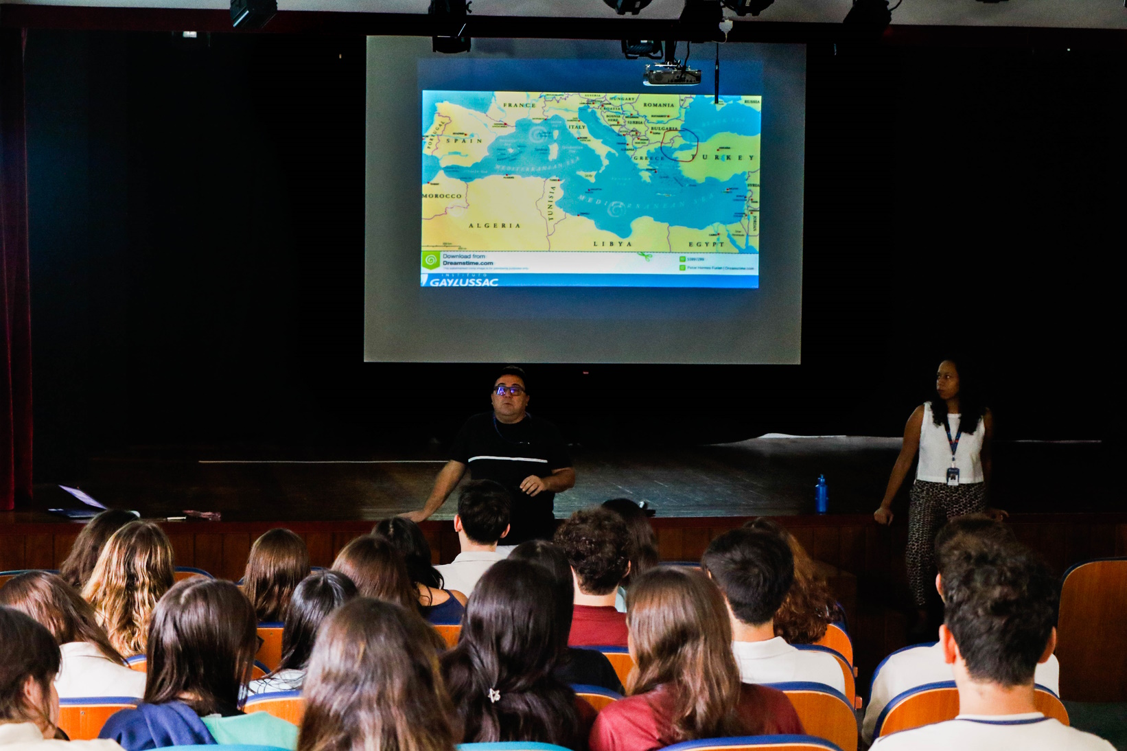 A geopolítica internacional foi foco de um debate entre alunos e professores no Teatro GayLussac e fez parte do Projeto Integração para o 9º ano ao Ensino Médio. Compreender como o poder se organiza histórica e geograficamente no mundo é essencial para entender a realidade globalizada contemporânea. Assuntos como as migrações na América Central, a situação feminina no Irã, a relação China e Taiwan, entre outros, foram abordados na aula integrada da professora de Geografia, Neiva Morais, e do Coordenador do Ensino Médio e professor de História da América Latina, Marcello Rangel.