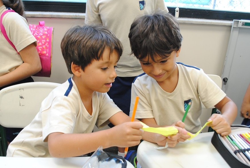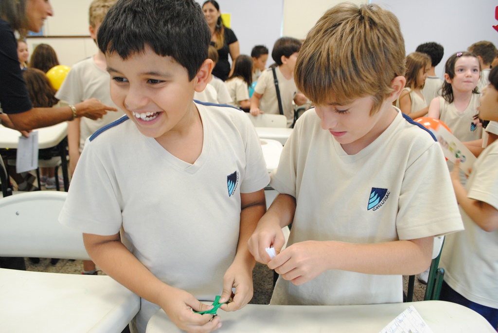 O 2º ano do Ensino Fundamental vive uma grande mudança. Afinal, é o ano em que as turmas saem do prédio do GayLussac Jardim para o prédio dos Ensinos Fundamental e Médio. Novos professores, novos auxiliares, novos espaços. Para vivenciar essas novidades de maneira tranquila, os alunos do 3º ano prepararam uma dinâmica de acolhimento para os colegas recém-chegados. Foi o Projeto Integração 2º e 3º anos, que garantiu aos alunos mais novos uma experiência de boas-vindas muito divertida.