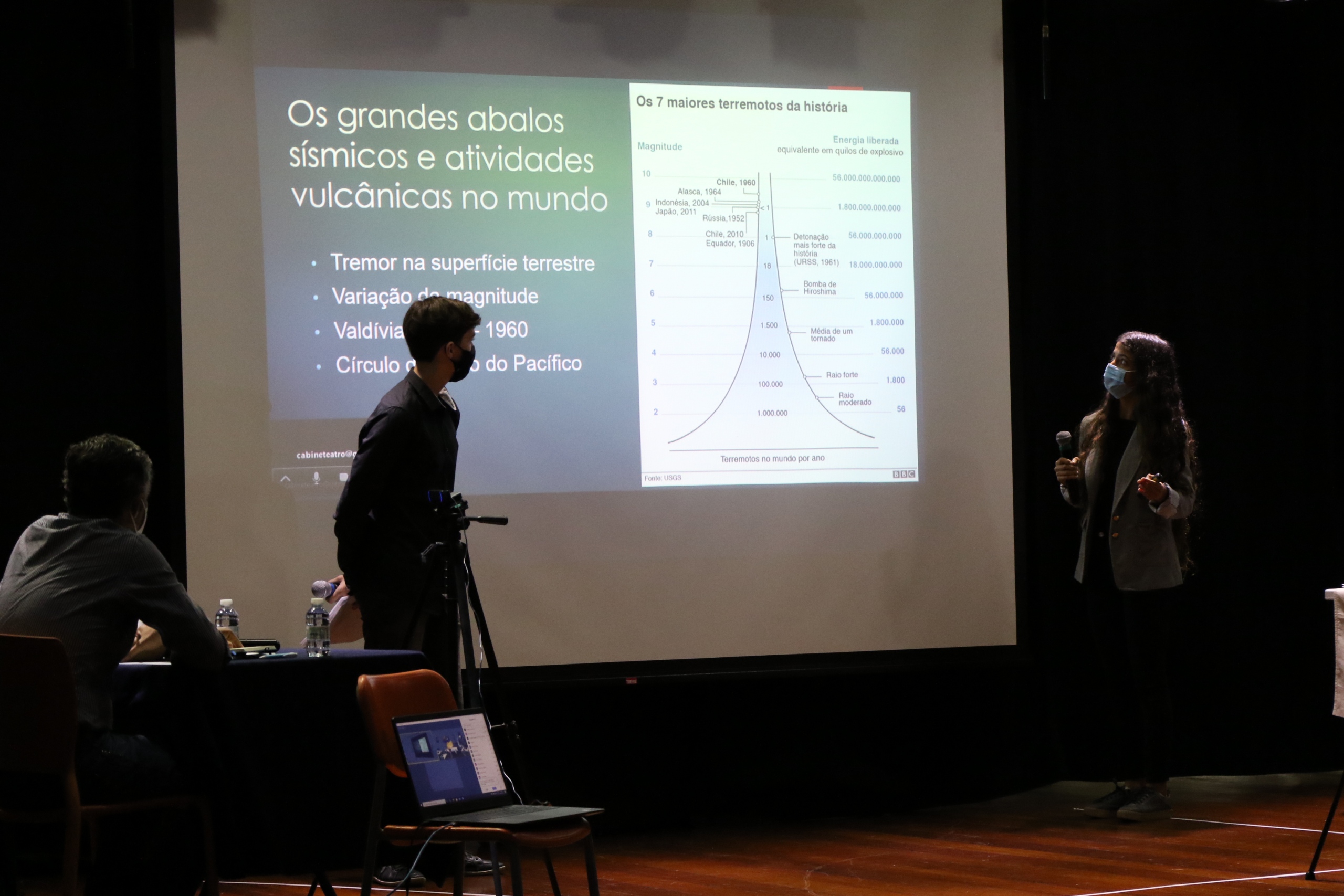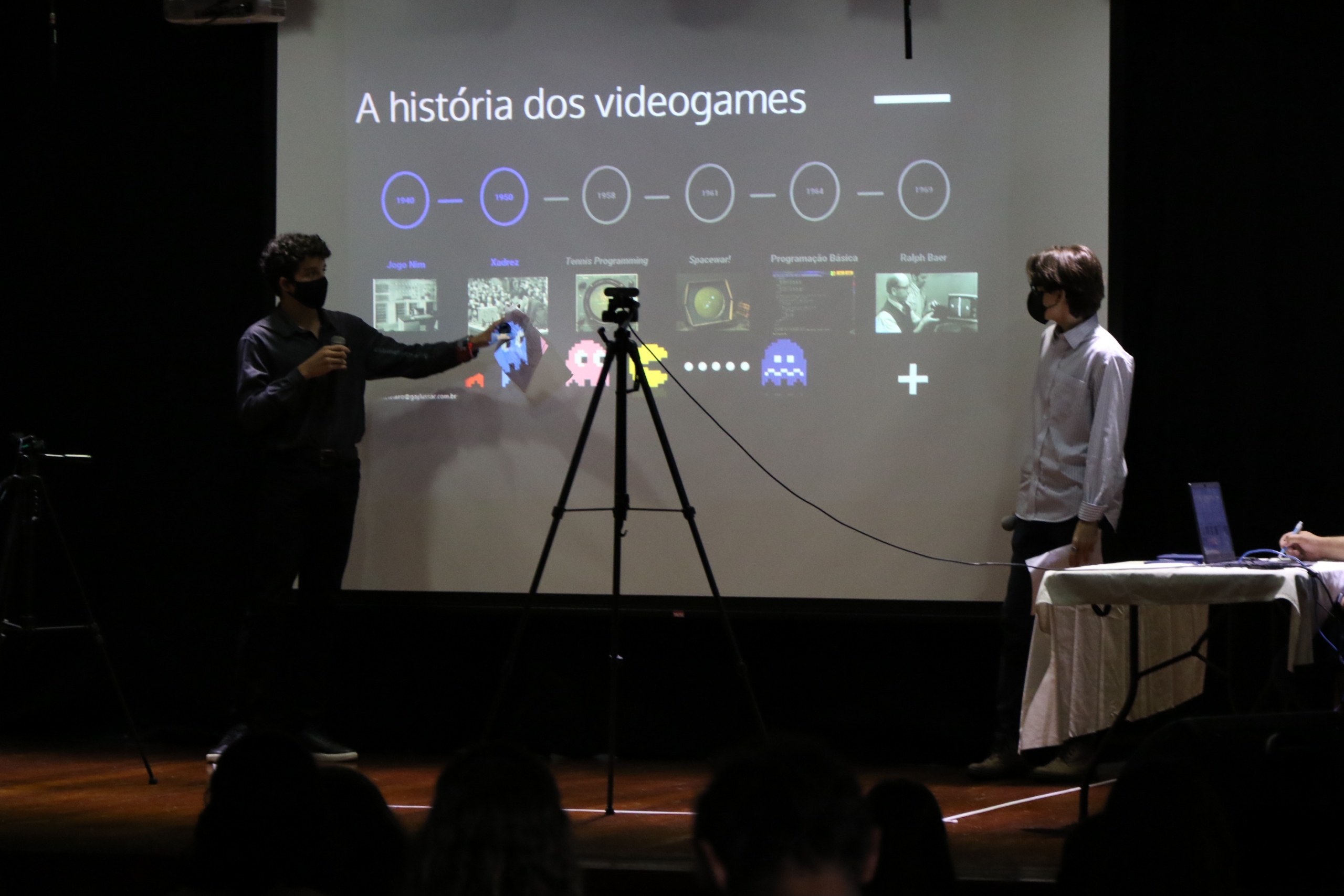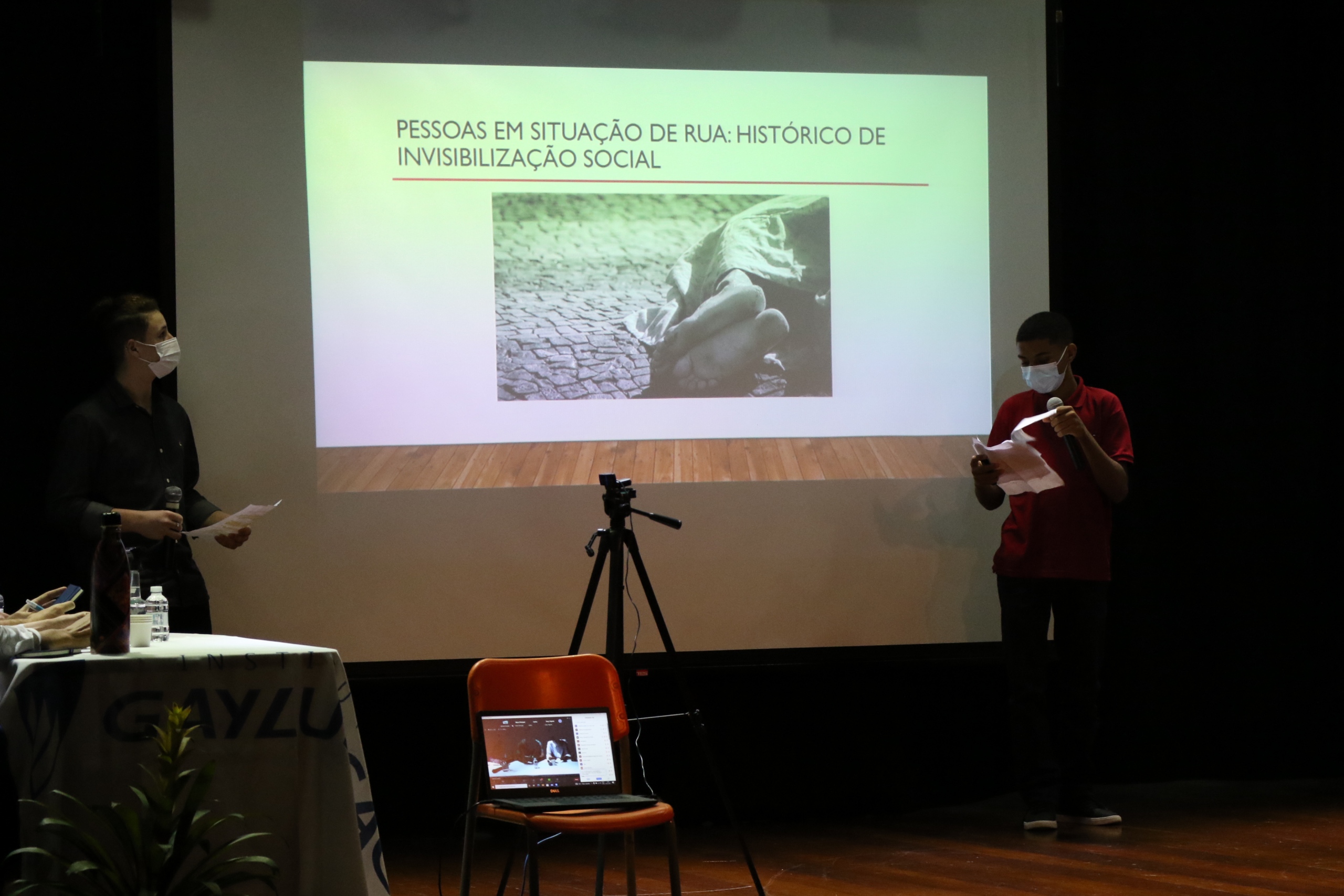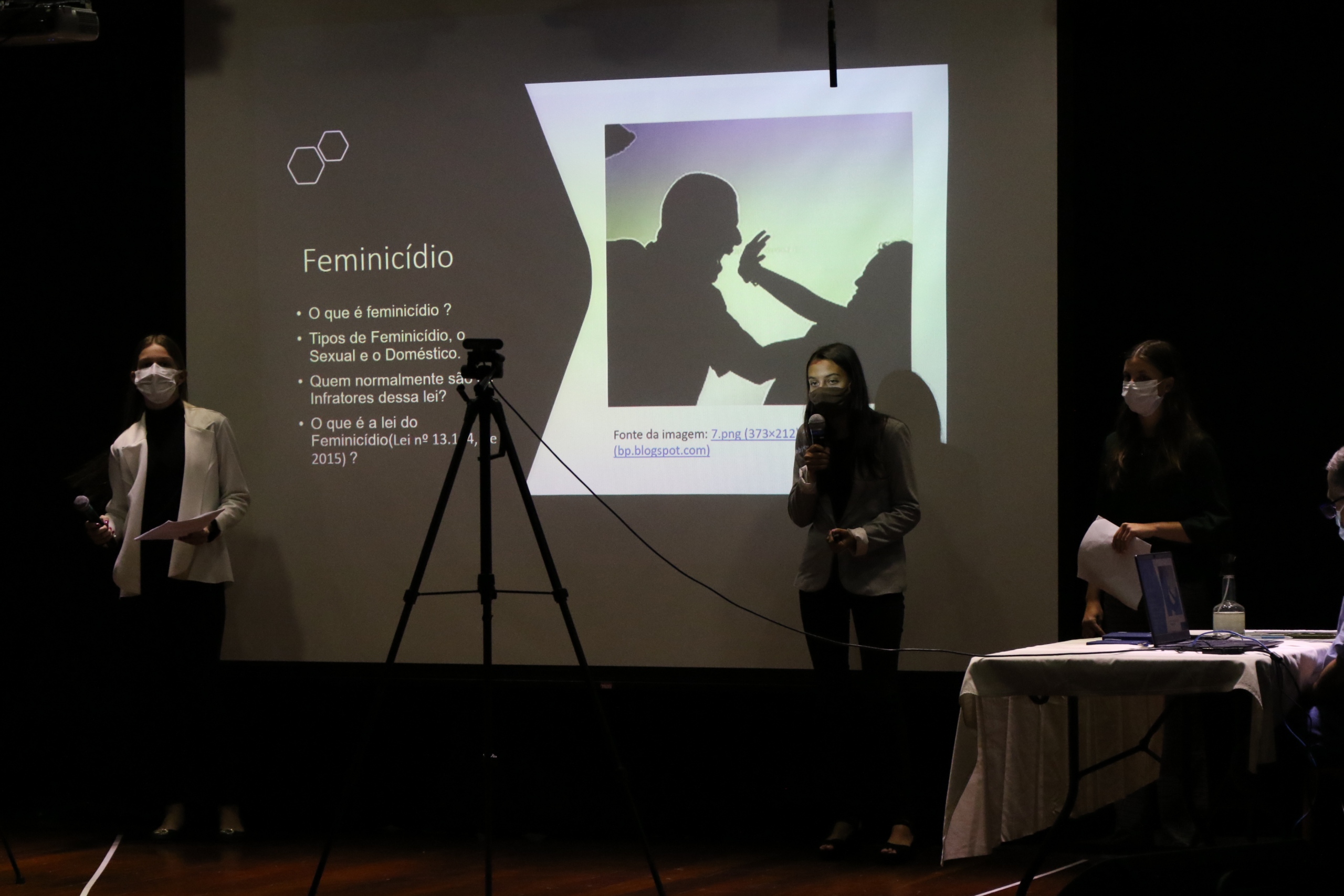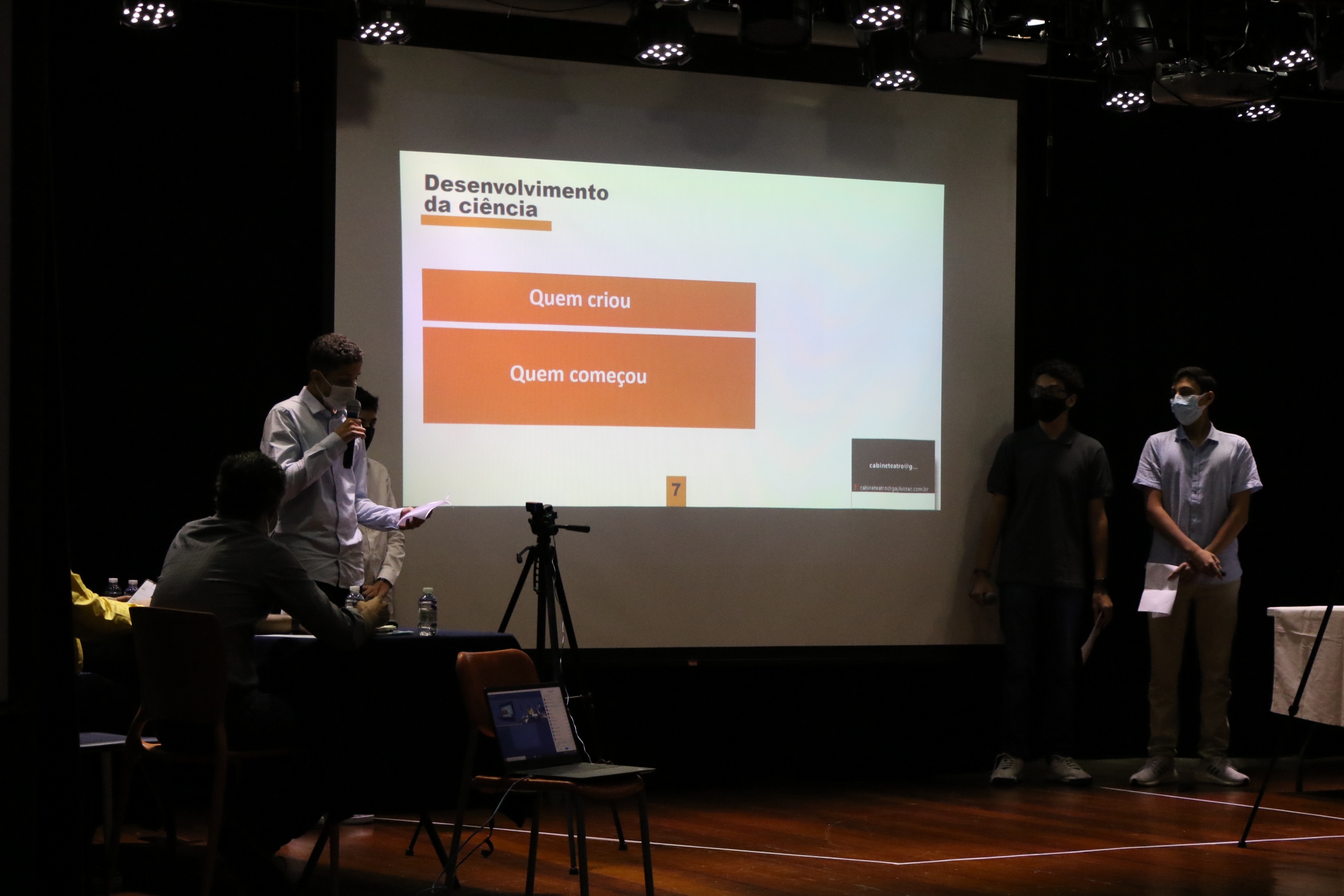 Assim, como na universidade, os alunos escolheram um tema, fizeram pesquisas de campo e de bibliografia e defenderam suas hipóteses. Para isso, contaram com orientadores, apresentação de slides e uma banca montada no nosso teatro para as análises dos trabalhos.