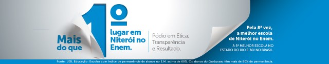 Há anos os resultados conquistados por nossos alunos no Exame Nacional do Ensino Médio revelam a constância de uma trajetória pedagógica que valoriza uma formação ampla e consistente. O GayLussac é, mais uma vez, o 1º lugar em Niterói, a 9ª melhor escola do Rio de Janeiro e a 43ª melhor colocada no país no ENEM, contando com a participação de 100% dos nossos alunos.