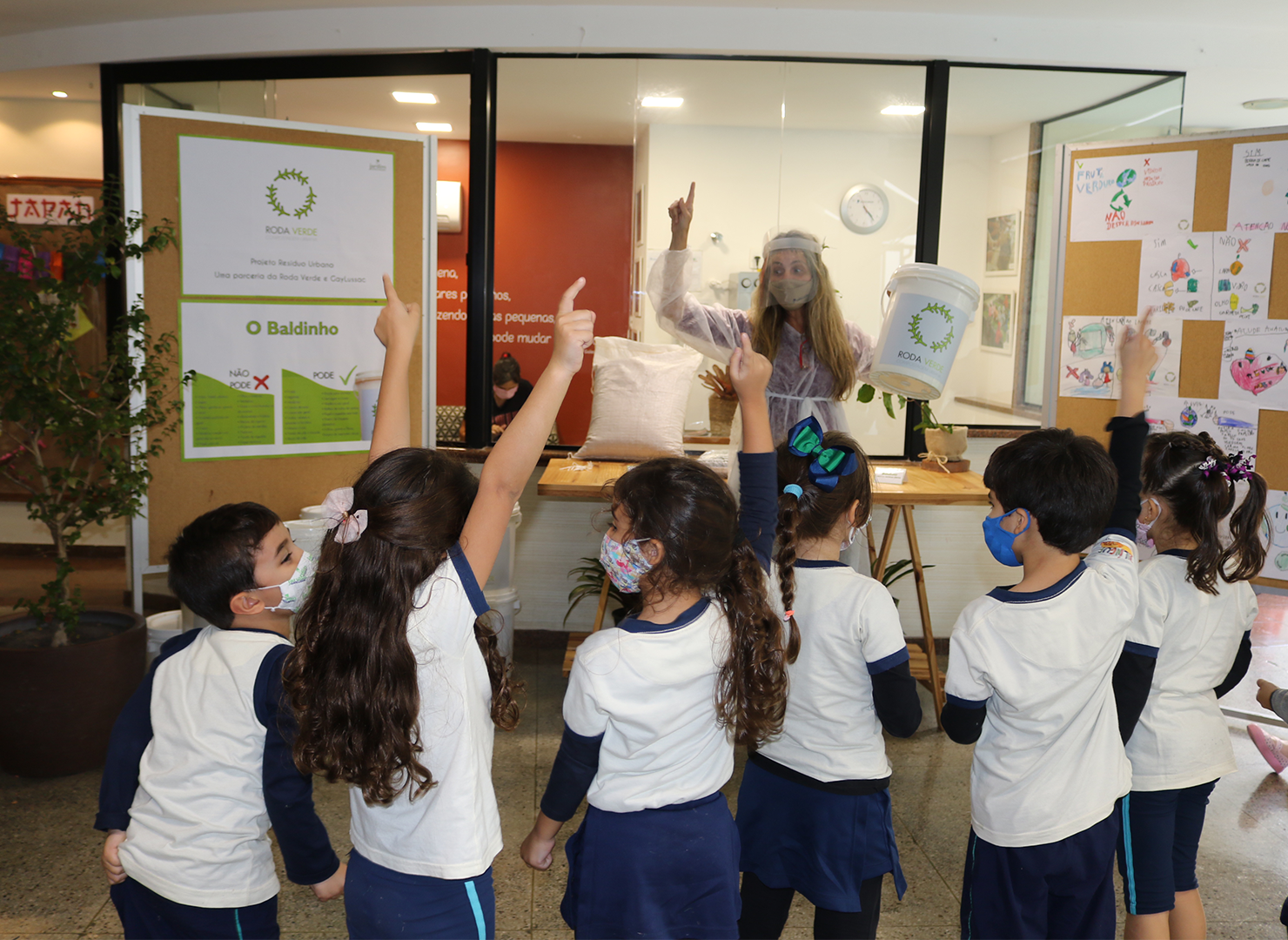 Iniciado em agosto, o processo completo até a entrega fica nas mãos dos pequenos! Responsáveis pela triagem do que deve ou não ser jogado nos baldinhos colocados em sala, cabe também a eles a escolha do lugar ideal para a sua disposição e a obrigação de mantê-los vedados. Desse modo, o trabalho visa incentivar mudanças de hábitos capazes de impactar positivamente a nossa cultura!