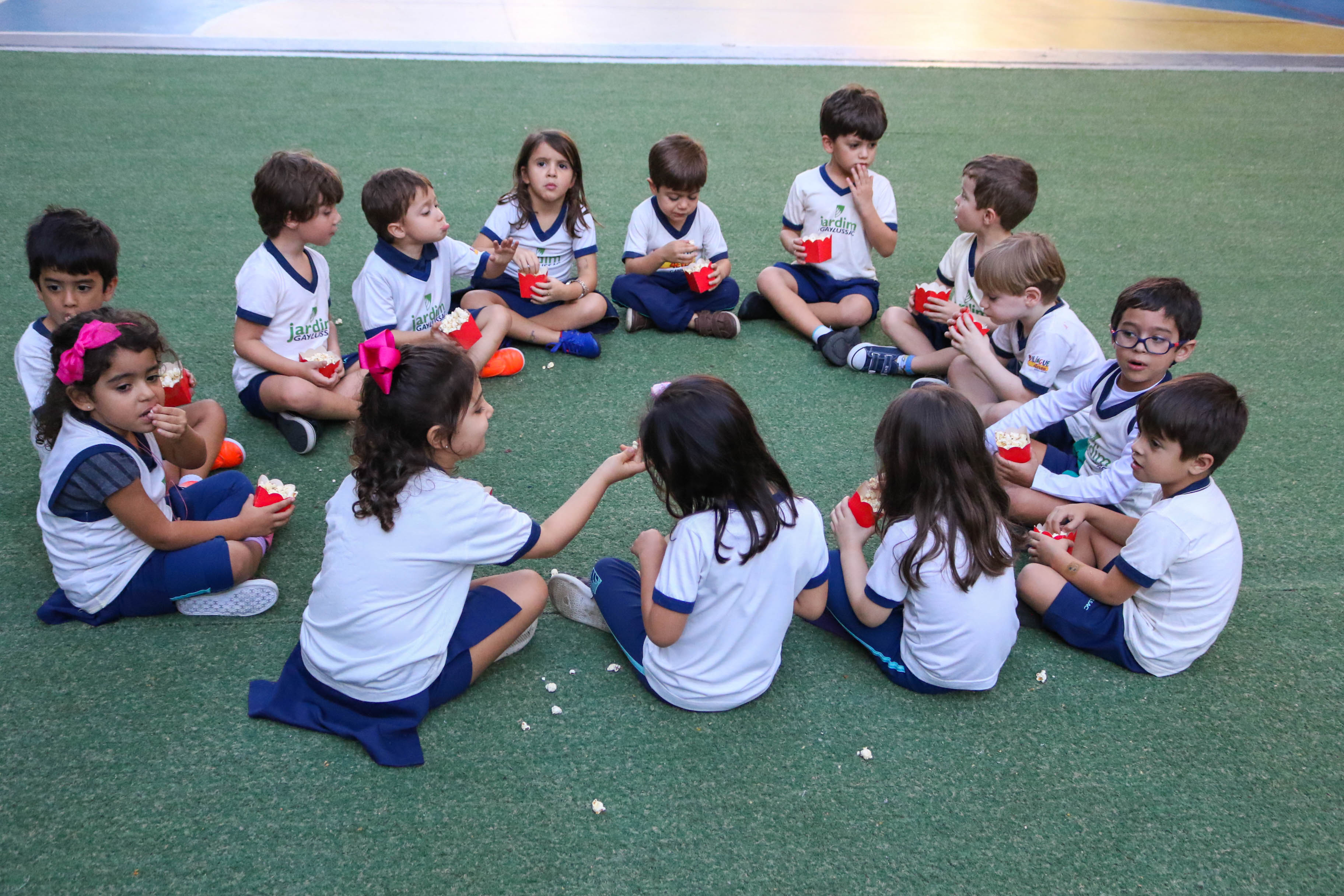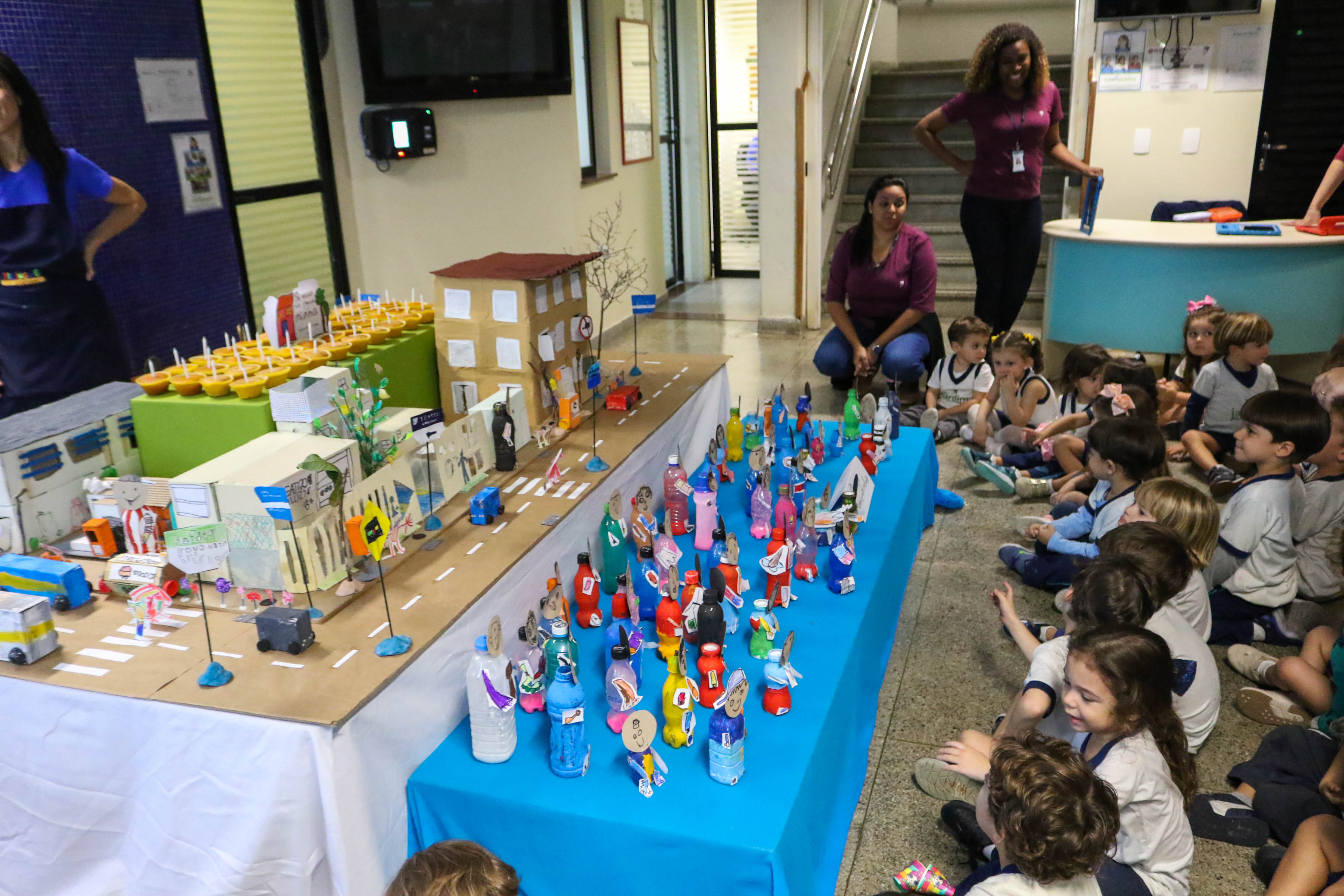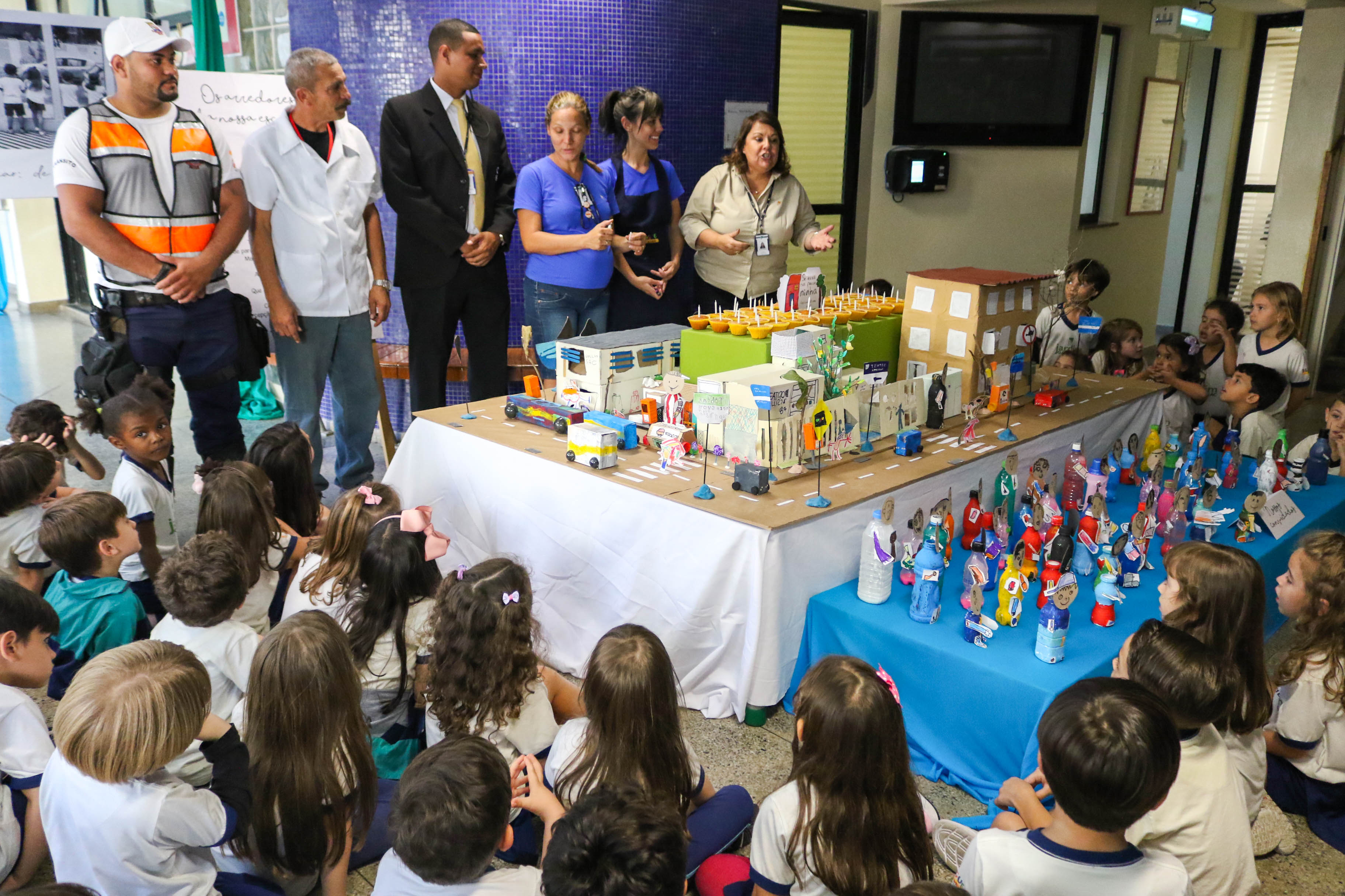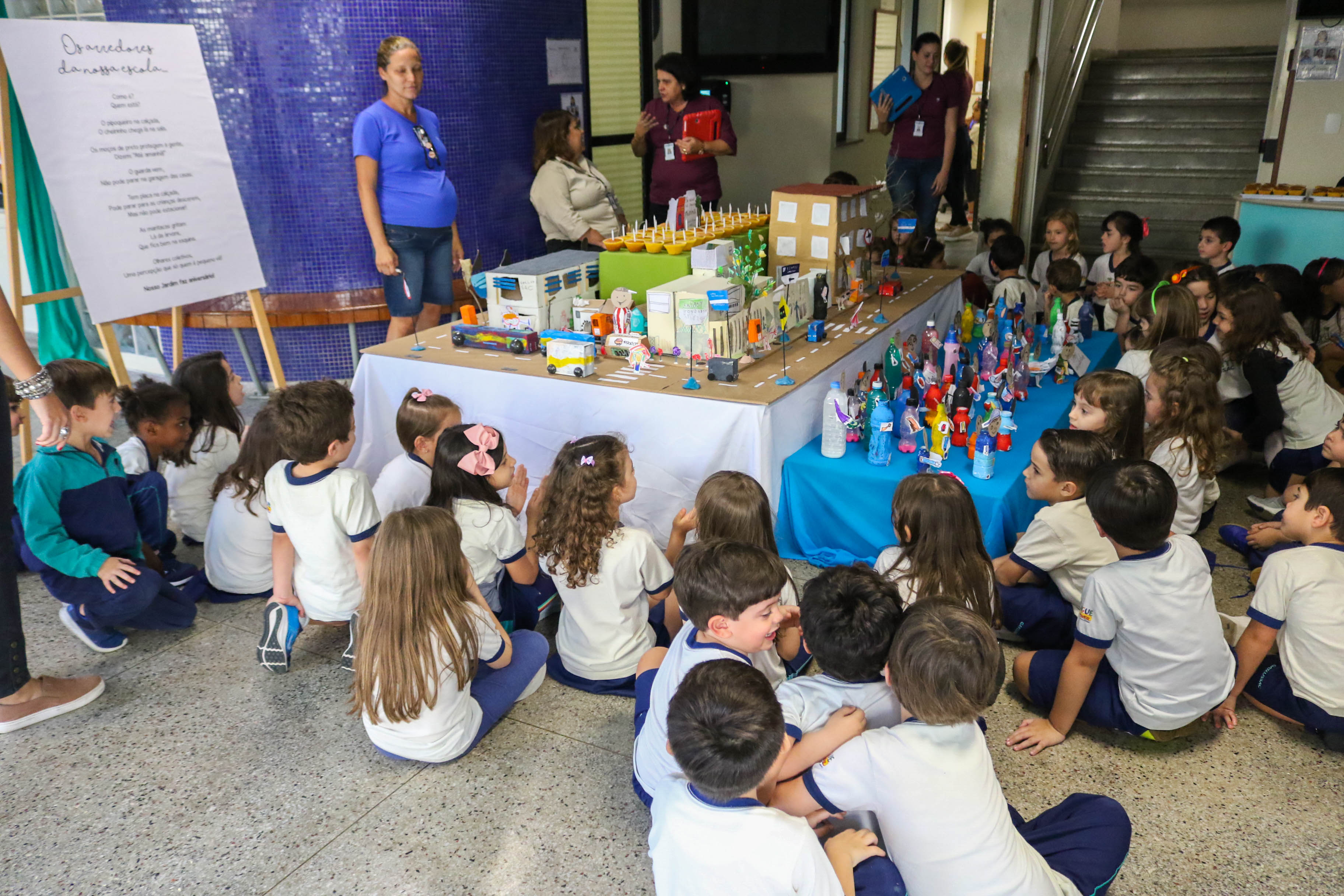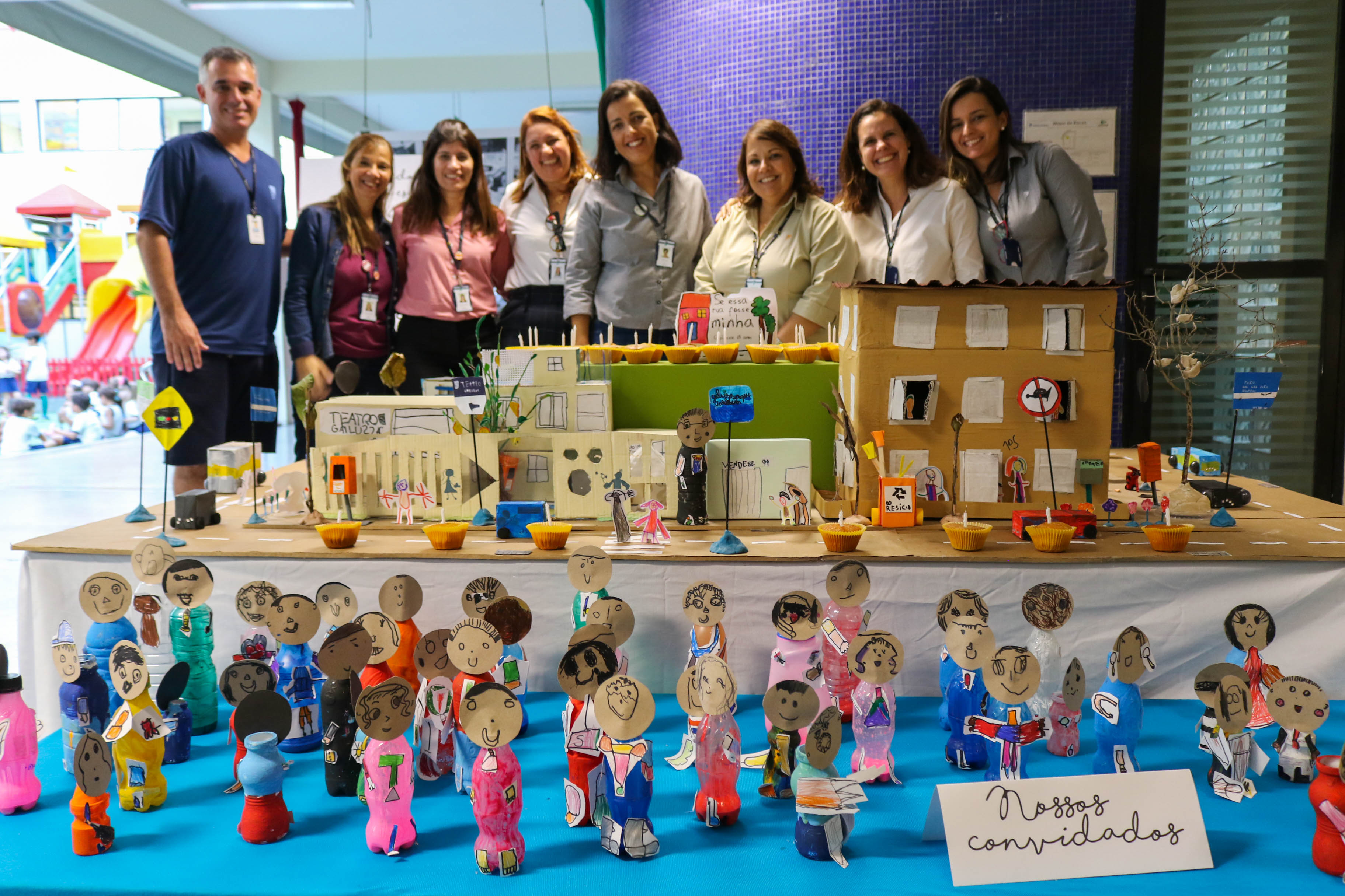 Na Educação Infantil, a comemoração do aniversário da escola teve como mote as descobertas feitas nos arredores da escola, fazendo com que os alunos saíssem para observar o que acontece do lado de fora do colégio. Com base nessas pesquisas, os alunos montaram uma supermaquete do quarteirão da escola e chamaram pessoas muito importantes para participar da festa: seu Jô, o pipoqueiro que está sempre na porta do colégio; o guarda de trânsito que toma conta da rua; o segurança que está sempre ali dando “bom dia”, “boa tarde” e “boa noite”; e o Wellington, do cachorro-quente.