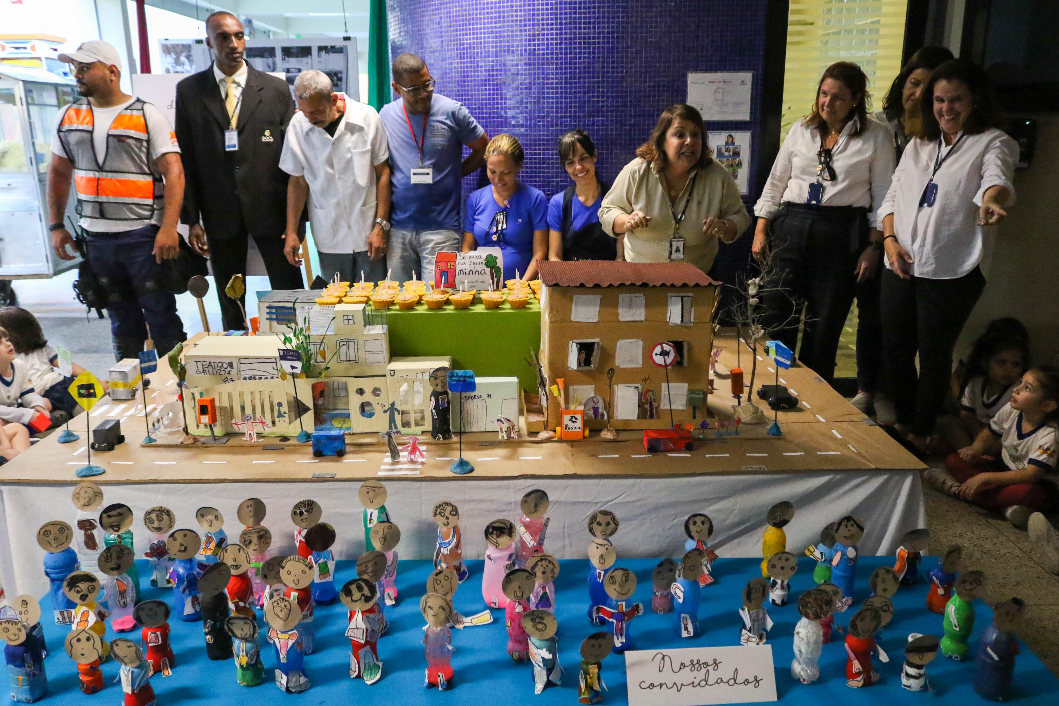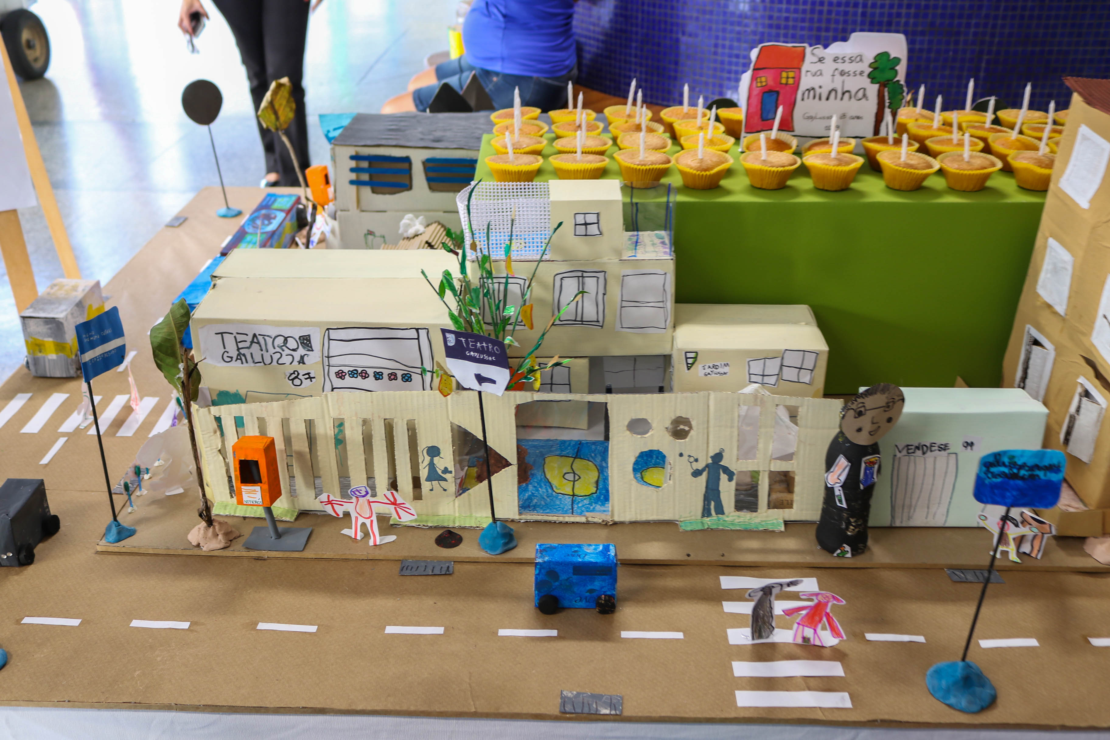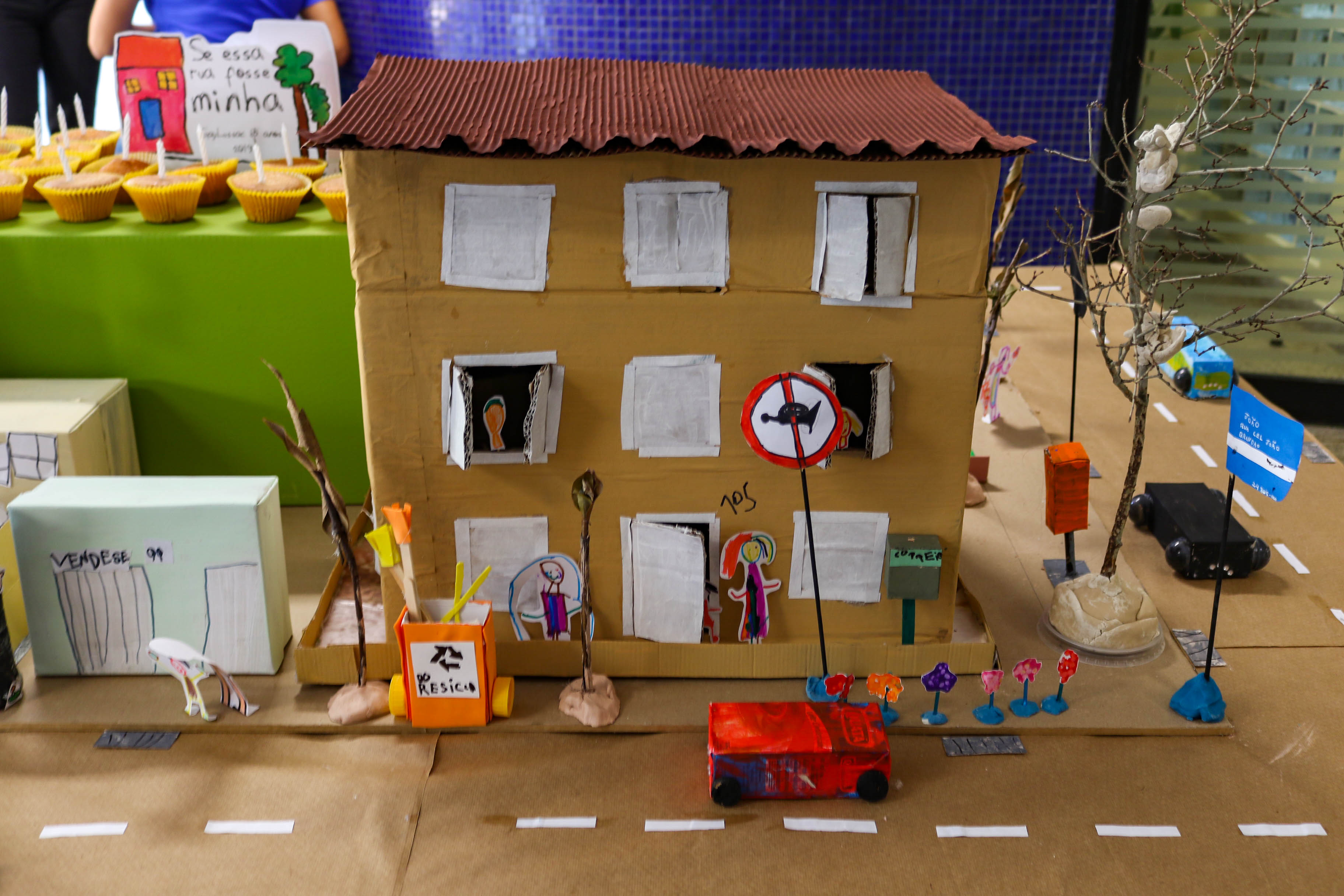 Ao imaginar uma rua deles e de todos, os alunos exploraram o espaço do quarteirão, concretizaram essa observação com croquis da rua, elaboraram os personagens que habitam esse espaço. A maquete coletiva ficou exposta na entrada da escola e impressionou pais e responsáveis.