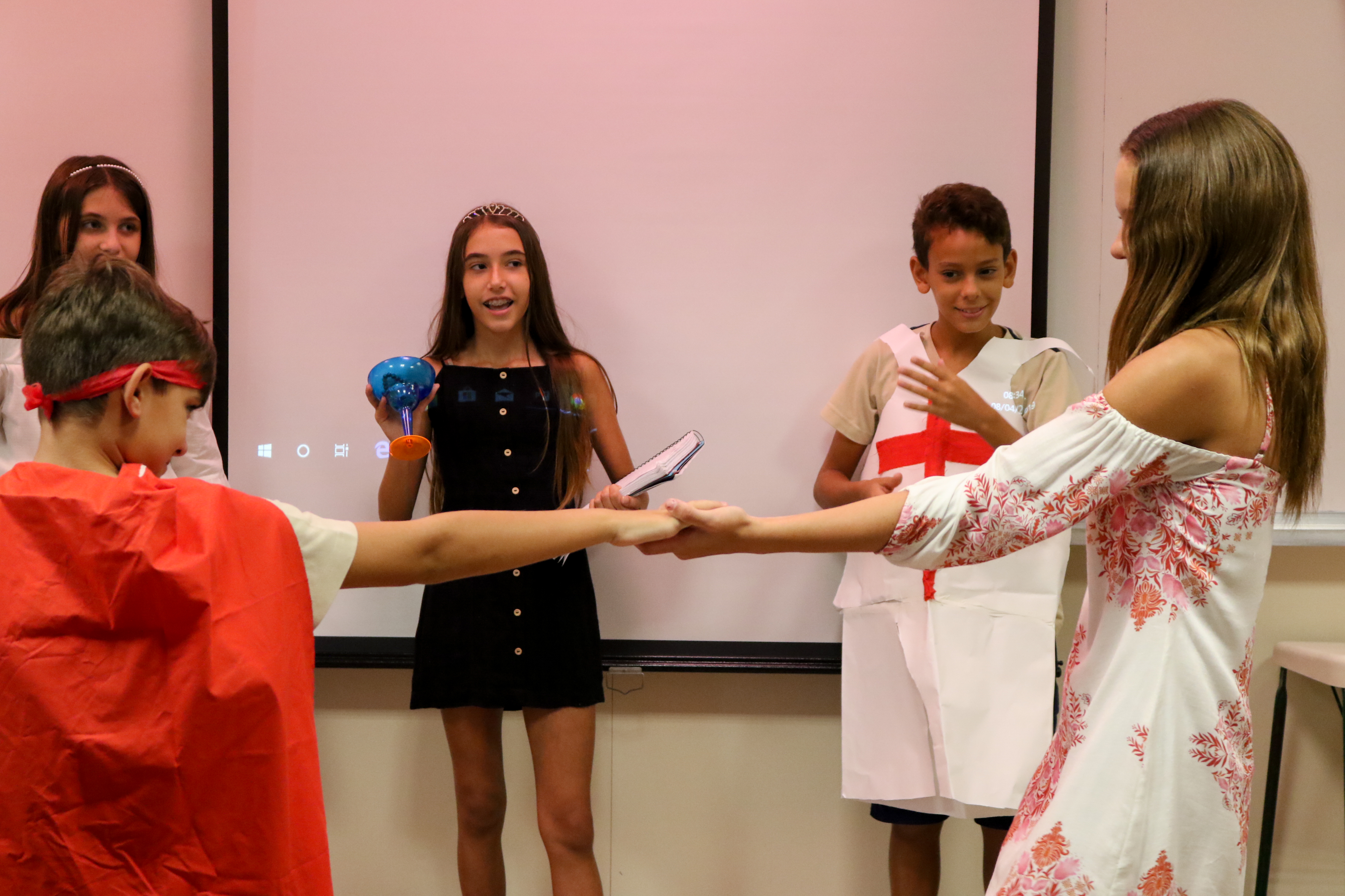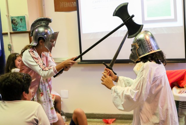 A proposta da professora de História, Vanessa Sanches, envolveu os estudantes na organização de uma Feira Medieval, onde expuseram trabalhos de artes plásticas, música, culinária medieval, danças e músicas. As turmas apresentaram as atividades para os professores e alunos de outros anos. De maneira interdisciplinar, a vivência envolveu Matemática, Língua Portuguesa, Artes e Língua Inglesa.