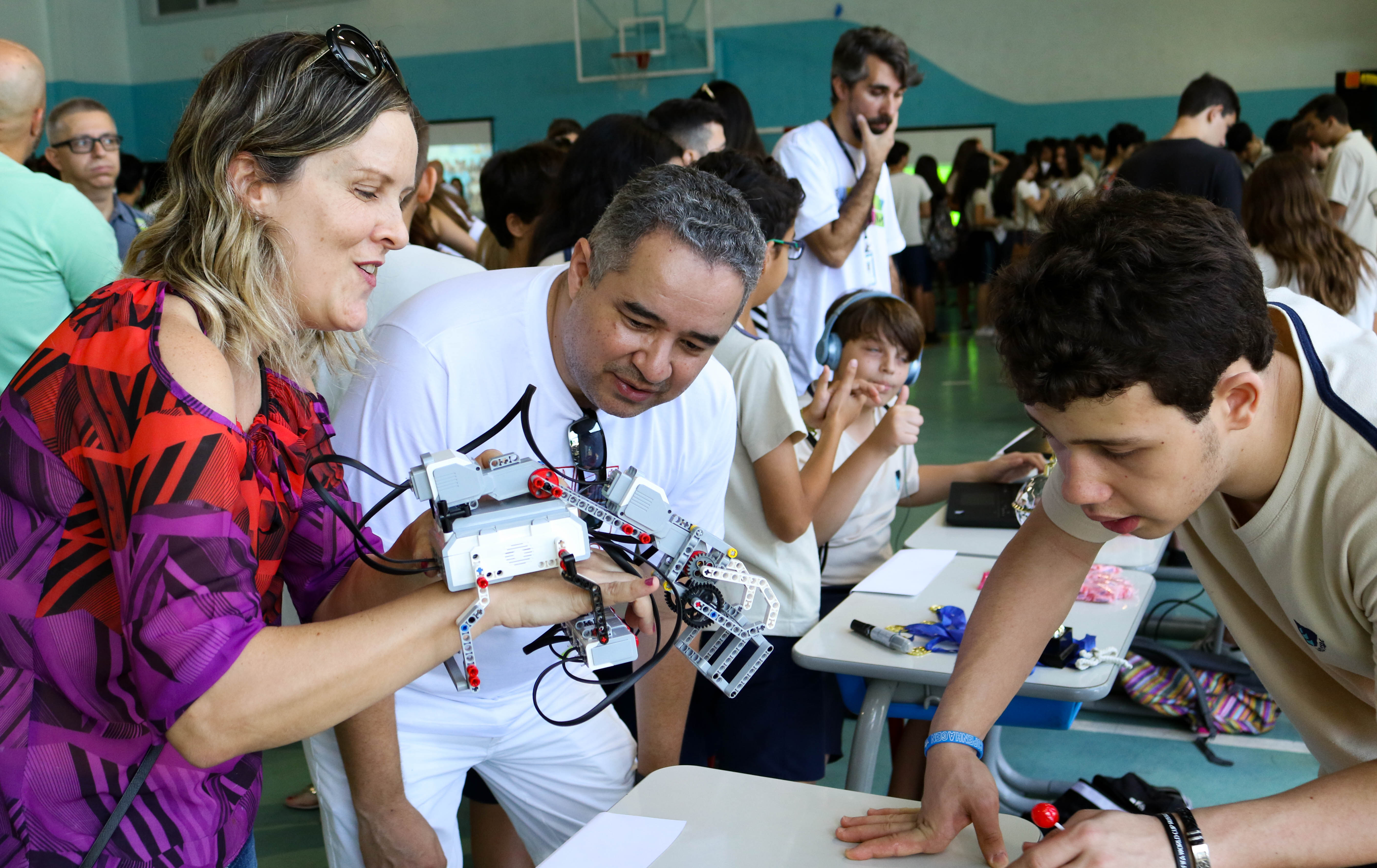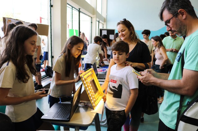 A proposta interdisciplinar STEAM envolveu pais e alunos em uma manhã de muito aprendizado. Ana Cláudia Corado, mãe de Bernardo (9º ano) e Vitor (6º ano) conta: “É formidável ver a desenvoltura, o conhecimento que eles possuem nas explicações e o preparo que supera a timidez. Gostaria que todas a crianças tivessem essa oportunidade, que a educação no Brasil fosse assim para todos”