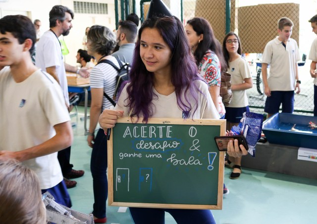 Durante toda a semana, os alunos do 6º ano do Ensino Fundamental à 3ª série do Ensino Médio assistiram a palestras com especialistas e recebem a premiação da Prova Canguru Matemático e Obmep. Sábado foi a hora de apresentarem suas pesquisas em um dia de portas abertas à comunidade escolar.