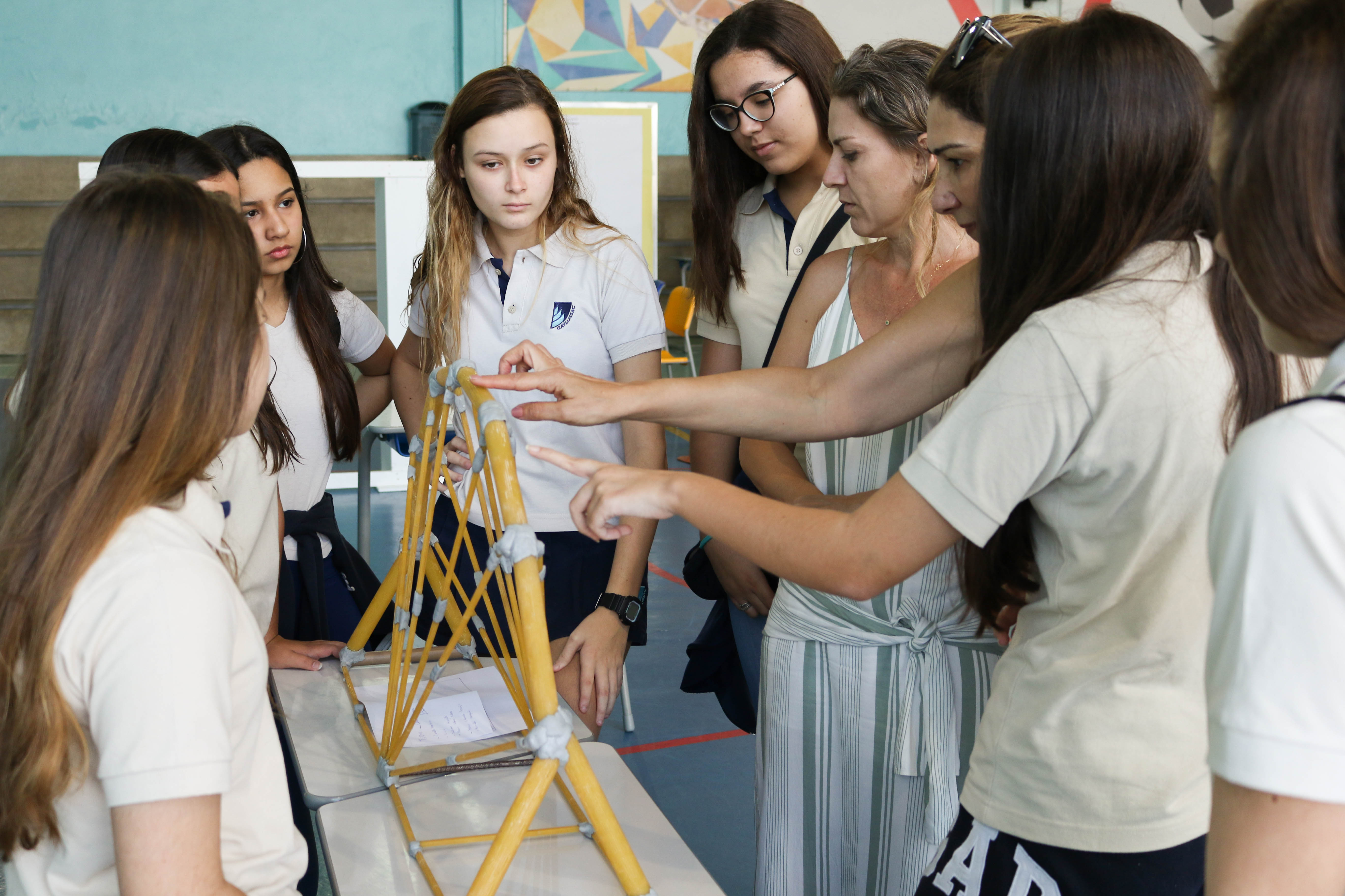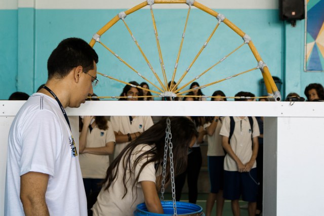 A mãe da aluna Tarsila, do 8º ano, conta: “Todo ano venho e sempre temos a expectativa das Pontes de Macarrão. Eu curto muito a receptividade dos alunos, poder prestigiar o trabalho das crianças. Adoro quando a escola abre as portas e sempre temos o que aprender”
