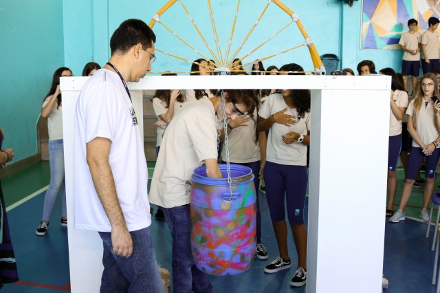 Os alunos Bruno Freitas e Lucas Pitombo, da 2ª série, apresentaram barquinhos movidos a vapor d’água no mesmo princípio que moveu as caldeiras da 1ª Revolução Industrial