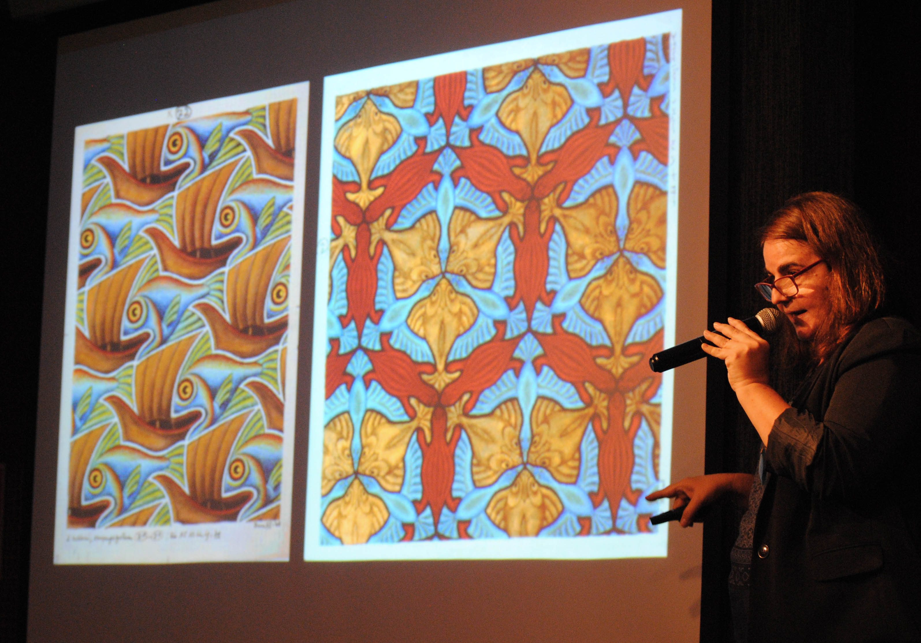 Kátia Ashton Nunes, autora de diversos livros e especializada em Arte e Matemática, trouxe aos nossos alunos do 6° e 7° anos, a palestra “Todo dia é dia de Ver matemática com Arte” que discute a riqueza da interdisciplinaridade entre o cálculo e o pincel.