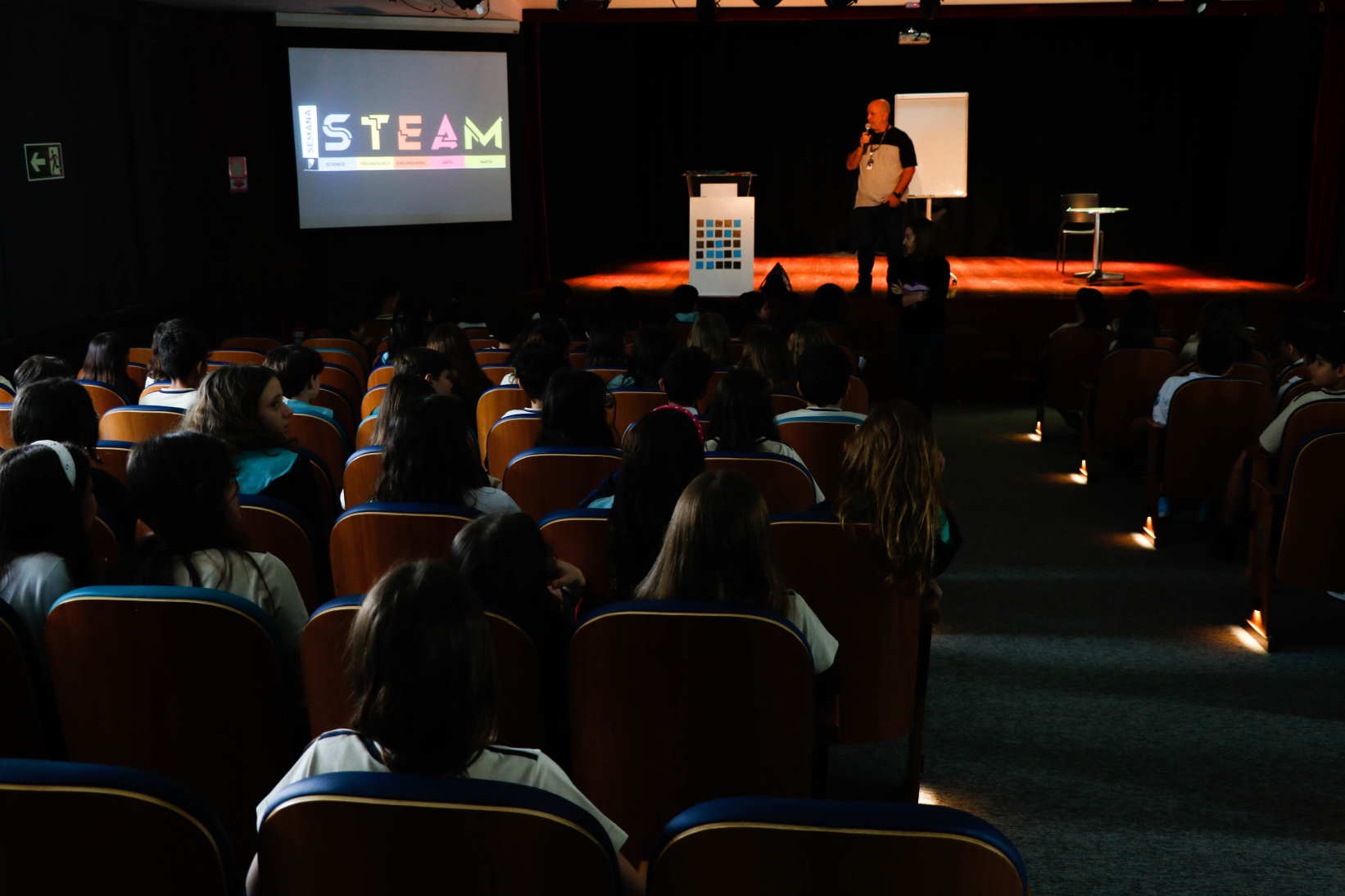 Como parte da Semana Steam, recebemos convidados especiais para palestras e conversas com os alunos. O 6º ano se surpreendeu com os “Truques e mistérios matemáticos” do nosso Orientador de Matemática, Ricardo Viz, e as turmas do 8º ano descobriram “Como se faz para trabalhar na indústria de Games?”, com o prof. Esteban Walter Gonzalez (UFF). O 9º ano recebeu o artista Rafael Turatti, com a palestra “Arte, Luz e Forma”, e os alunos do Ensino Médio assistiram a palestra “A medicina frente aos avanços tecnológicos do século XXI”, com o Dr. Cláudio Tinoco (UFF) e “Física e Artes: conexões e inspirações”, com o prof. Lucas Sigaud (UFF).
