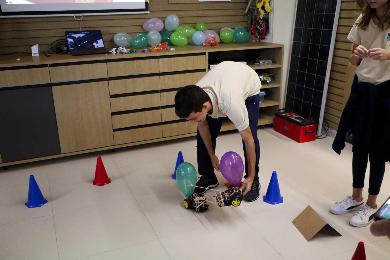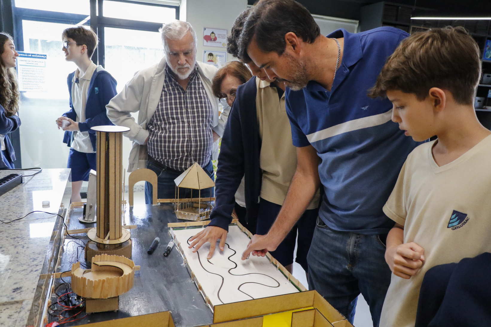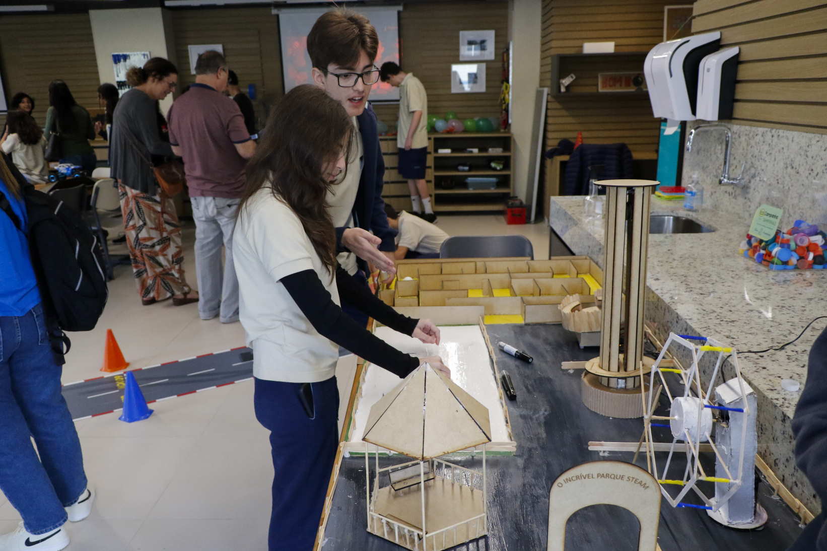 “Nos dividimos em grupo e fizemos um ótimo trabalho em equipe. A construção do projeto em si não foi difícil, aqui no GayLussac temos todo o maquinário” contaram Vitor e Leonardo, da 1M1. “Aprendemos o conteúdo do nosso trabalho nas aulas da professora Lana. É muito divertido saber que podemos estudar e nos divertir ao mesmo tempo” completaram Maria Sofia e Marina, da 6M4.