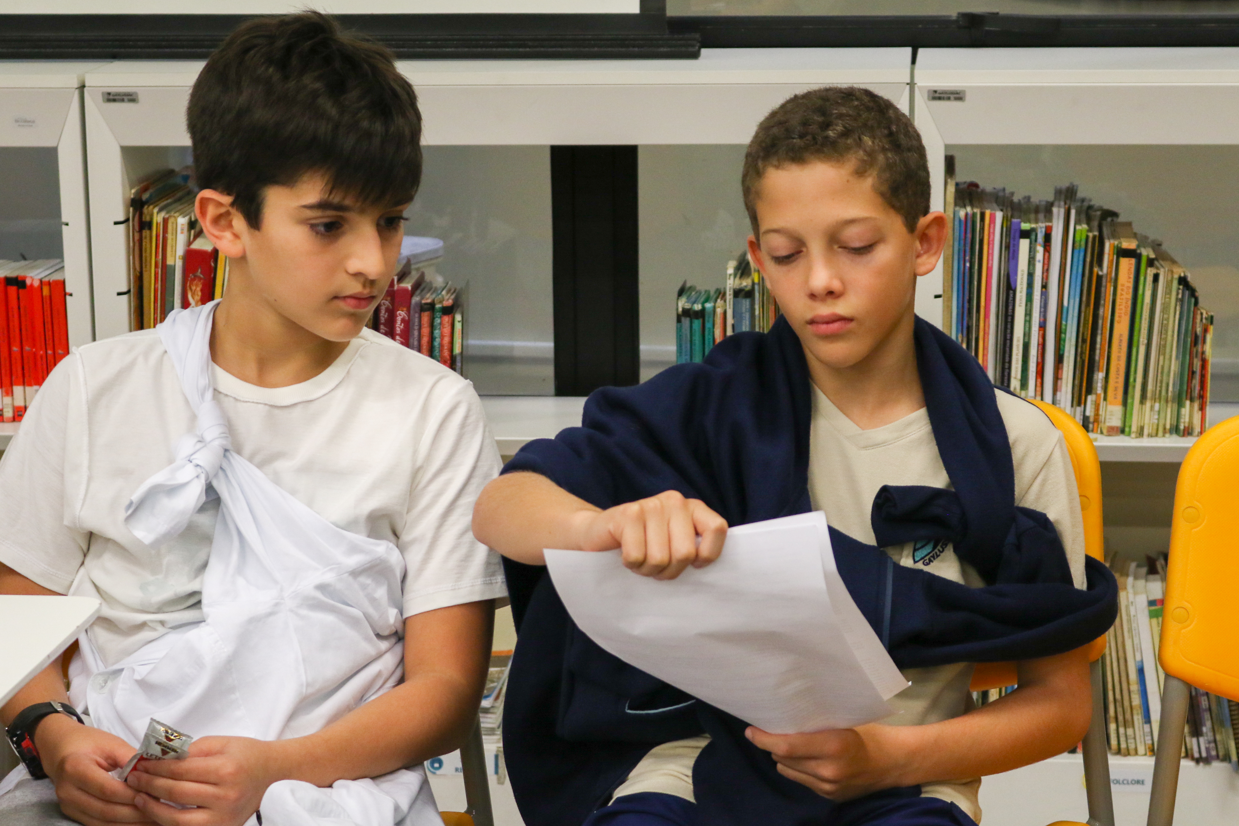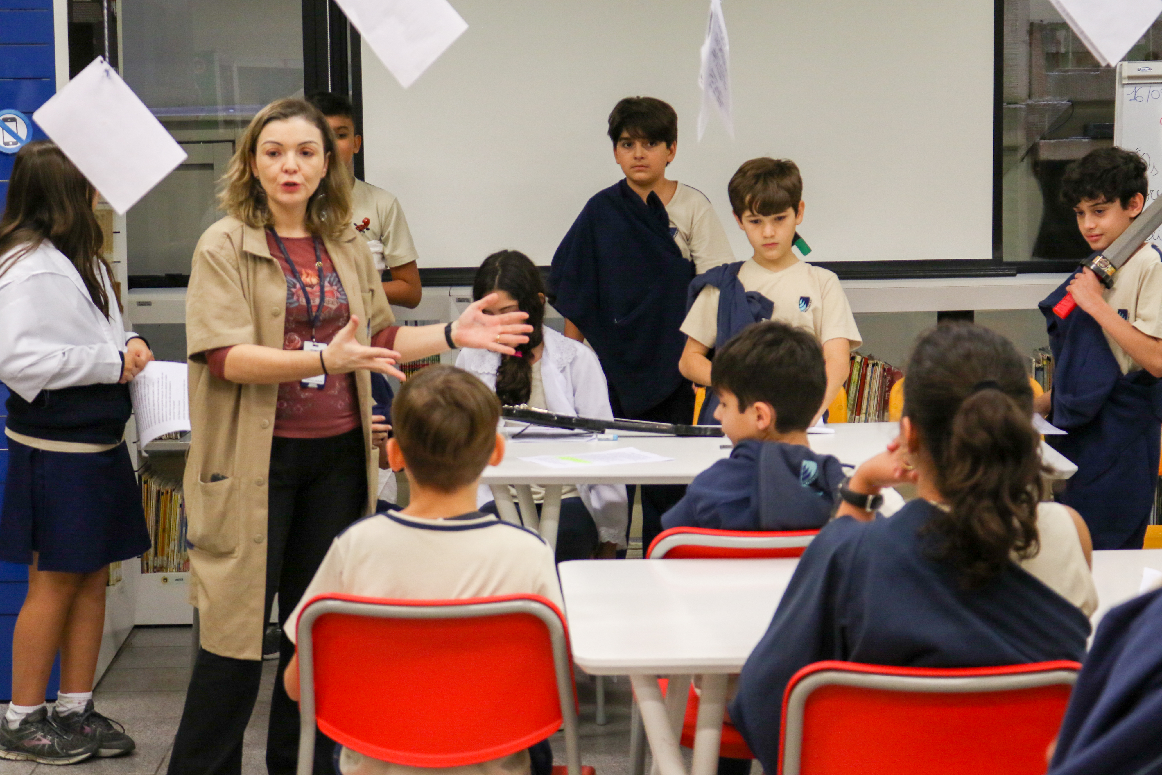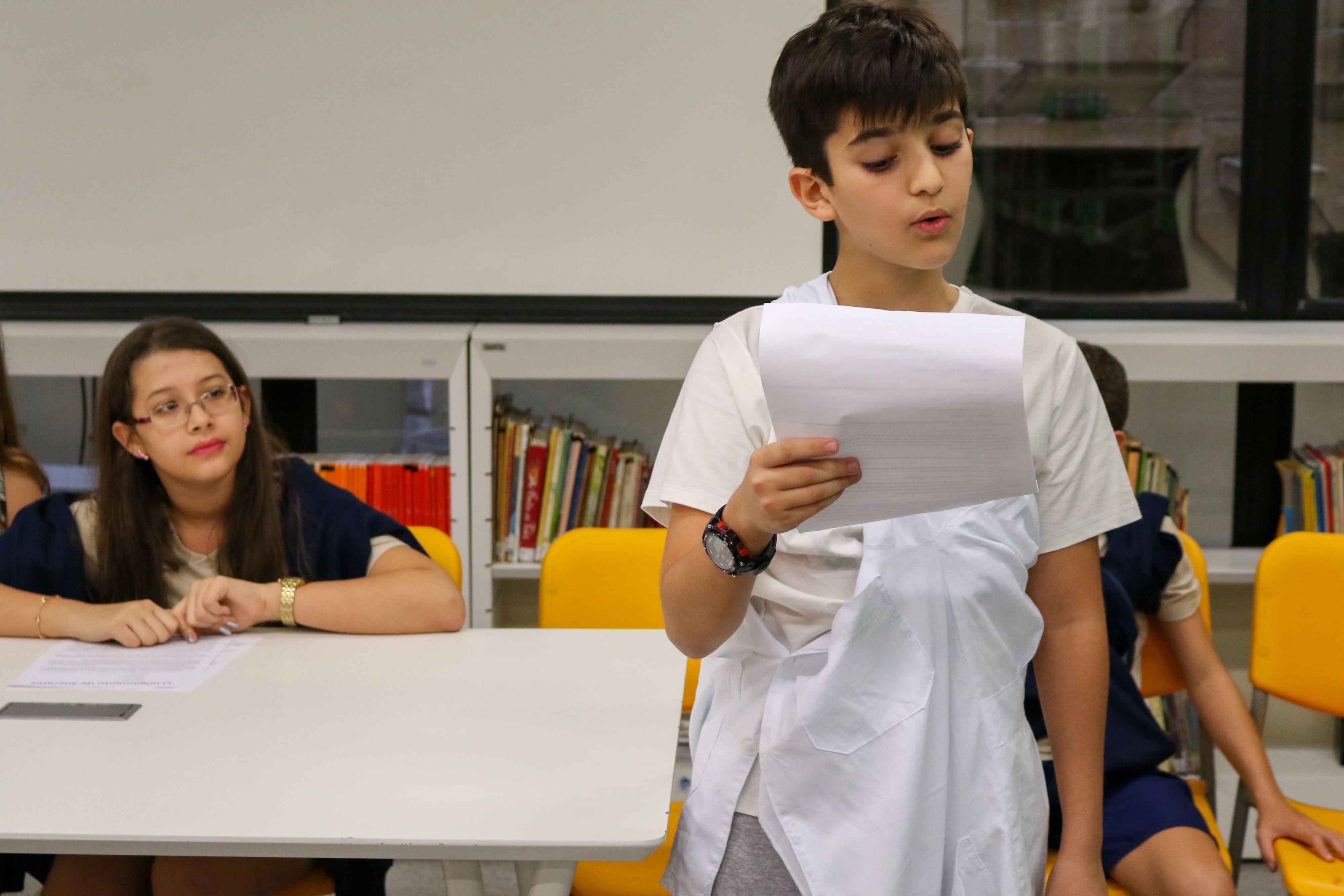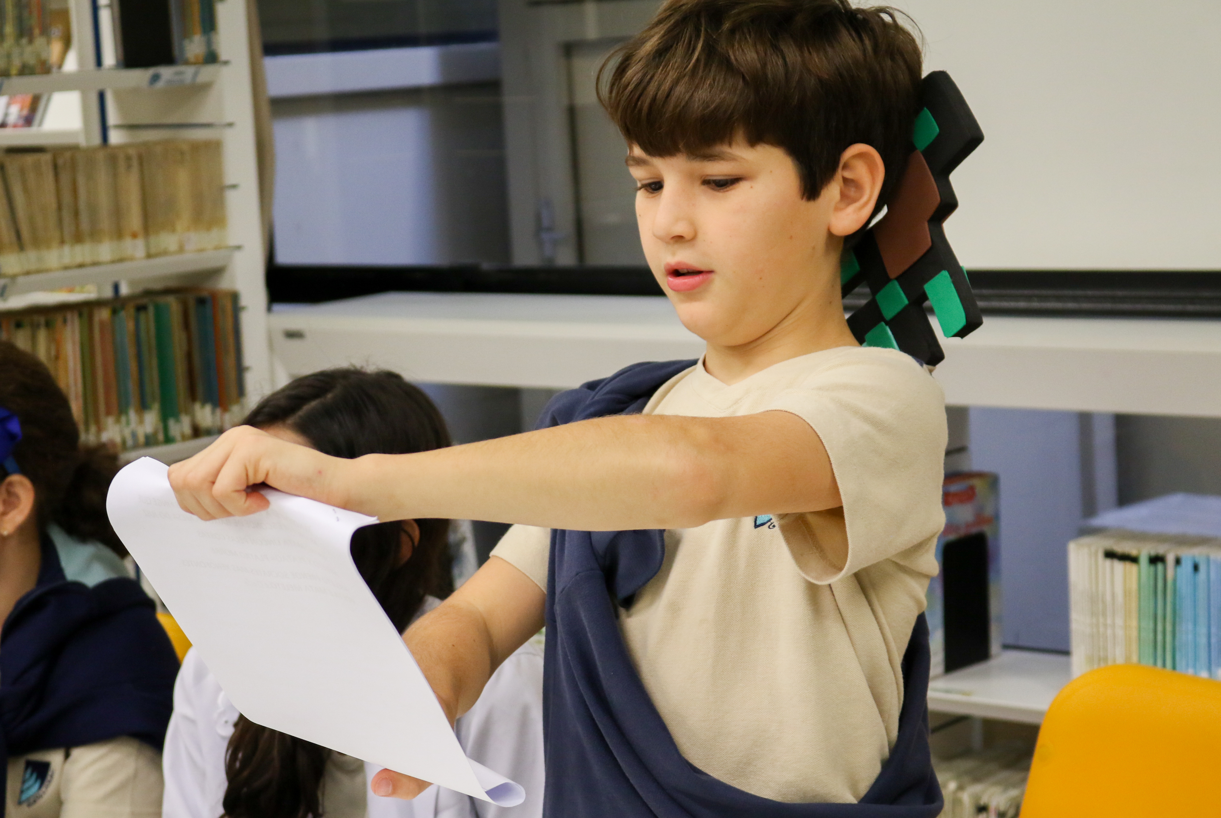 “Declaro aberto o julgamento de Sócrates”. Assim começou a apresentação de um dos grupos nas aulas de Cidadania e Salvaguarda. O conceito de democracia e o julgamento mais famoso da Grécia Antiga foram pauta de debate para os alunos do 6º ano do Ensino Fundamental. A proposta da professora Priscila Aquino foi que os alunos estudassem os personagens do julgamento e elaborassem um roteiro para simulação. Caracterizados e com as falas na ponta da língua, as turmas modificaram e atualizaram a história e os personagens em uma atividade lúdica e criativa repleta de aprendizado.