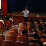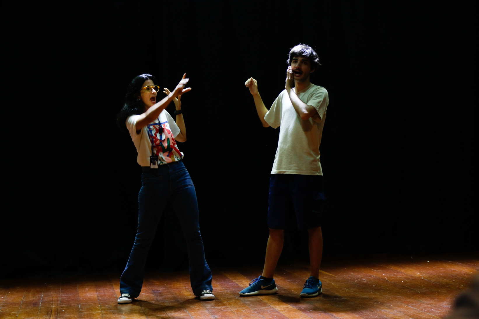 A aula aconteceu em todo o teatro: plateia e palco lotados com os jovens vestibulandos. “Surgiram improvisos de forte teor político e crítica social, além de muito divertidos. O clima de cooperação e acolhimento foi geral e todos, sem exceção, saíram do teatro com uma sensação de querer mais”, explica a professora e atriz Bruna Scavuzzi.