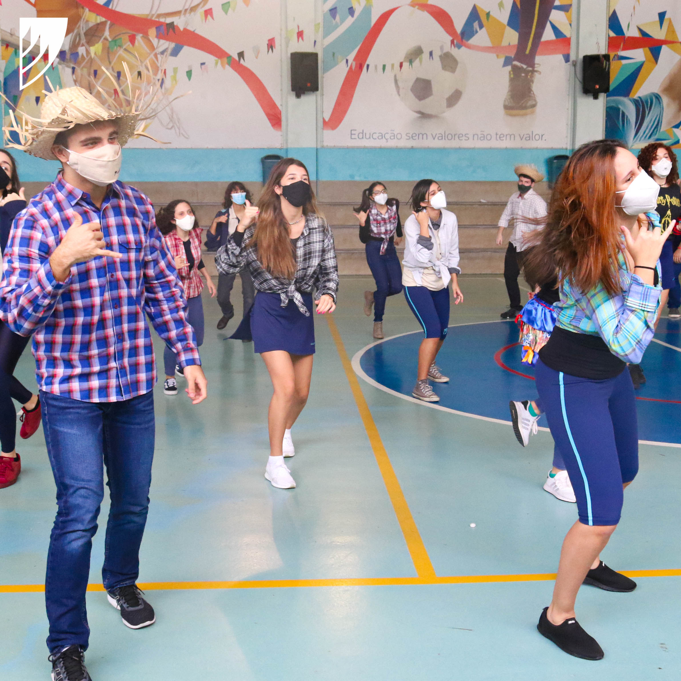 Uma festa híbrida para celebrar a solidariedade mesmo em tempos de pandemia. Todo ano a escola se veste de chita, juta e bandeirolas multicoloridas para receber nossas famílias no grande evento solidário, o nosso Arraiá D’Ajuda, um encontro que nasce da responsabilidade social e voluntariado de pais, professores, funcionários e alunos. Em 2020 fizemos uma festa completamente on-line e agora, em 2021, a proposta da nossa folia foi híbrida: na escola, os alunos participaram de brincadeiras e danças típicas repletas de tradição e dos cuidados de distanciamento frente ao coronavírus. Em casa, as famílias assistiram a essa folia em lançamentos em nosso YouTube. Foi o Arraiá D’Ajuda também em casa!