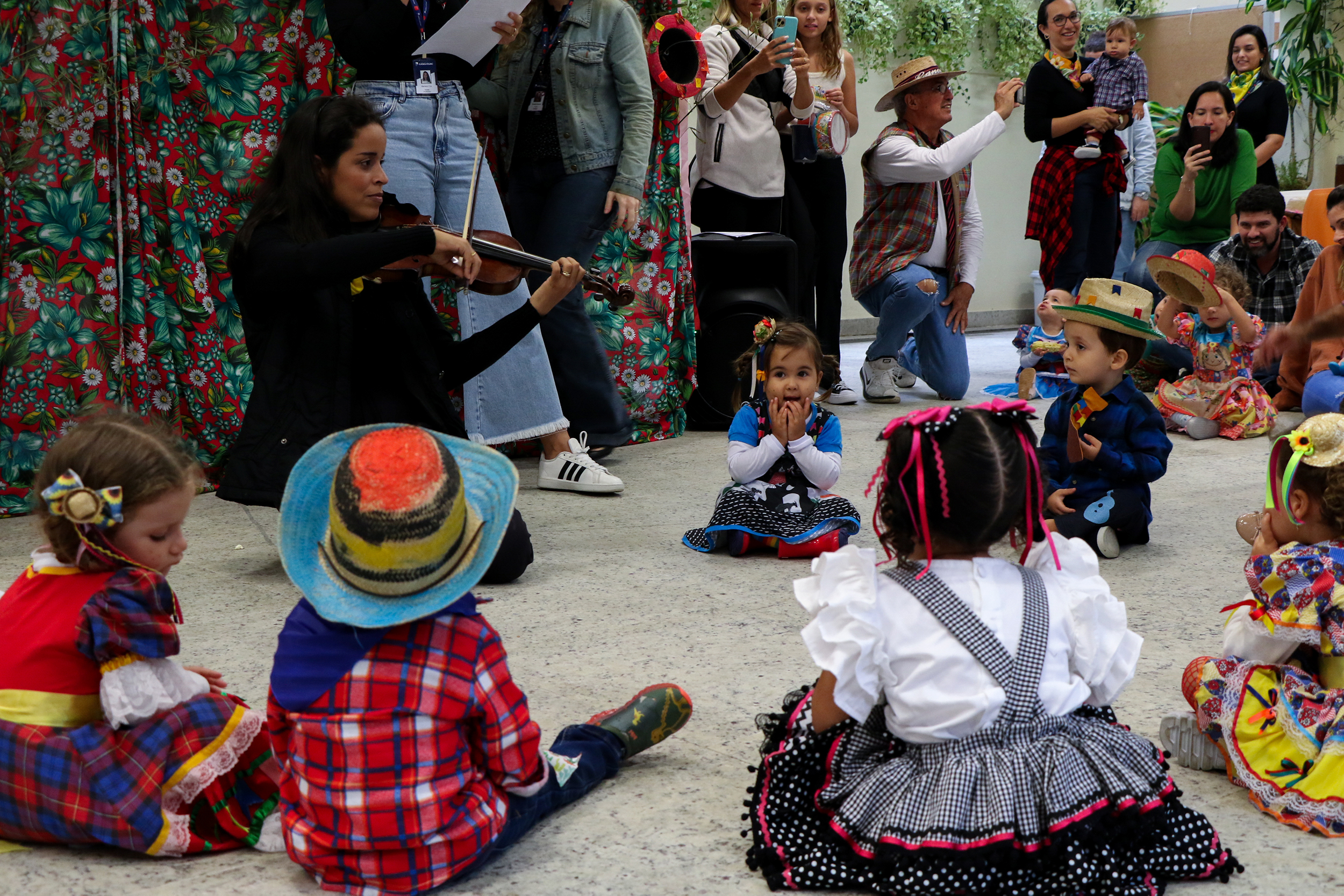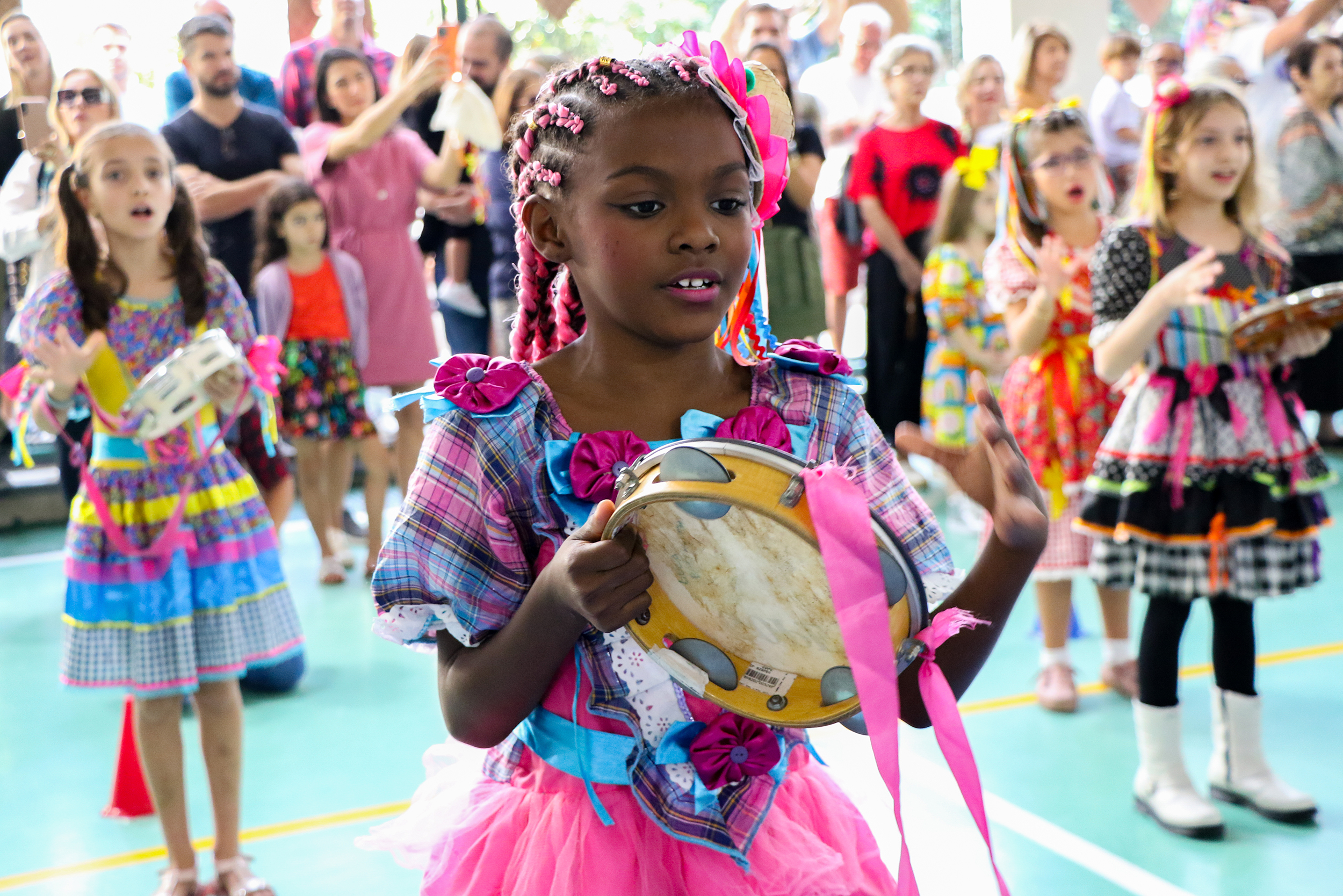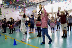 As apresentações do 2º ao 5º ano se basearam no estudo da musicalidade que unia ritmos tradicionais do forró ao Rock – em homenagem aos 40 anos do Rock Brasil. Toda ornamentação da festa também foi feita durante as aulas do Ateliê de Artes, envolvendo as famílias na confecção das bandeirinhas.