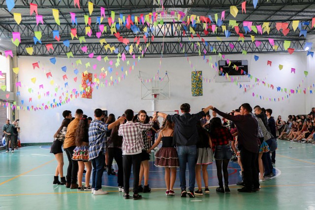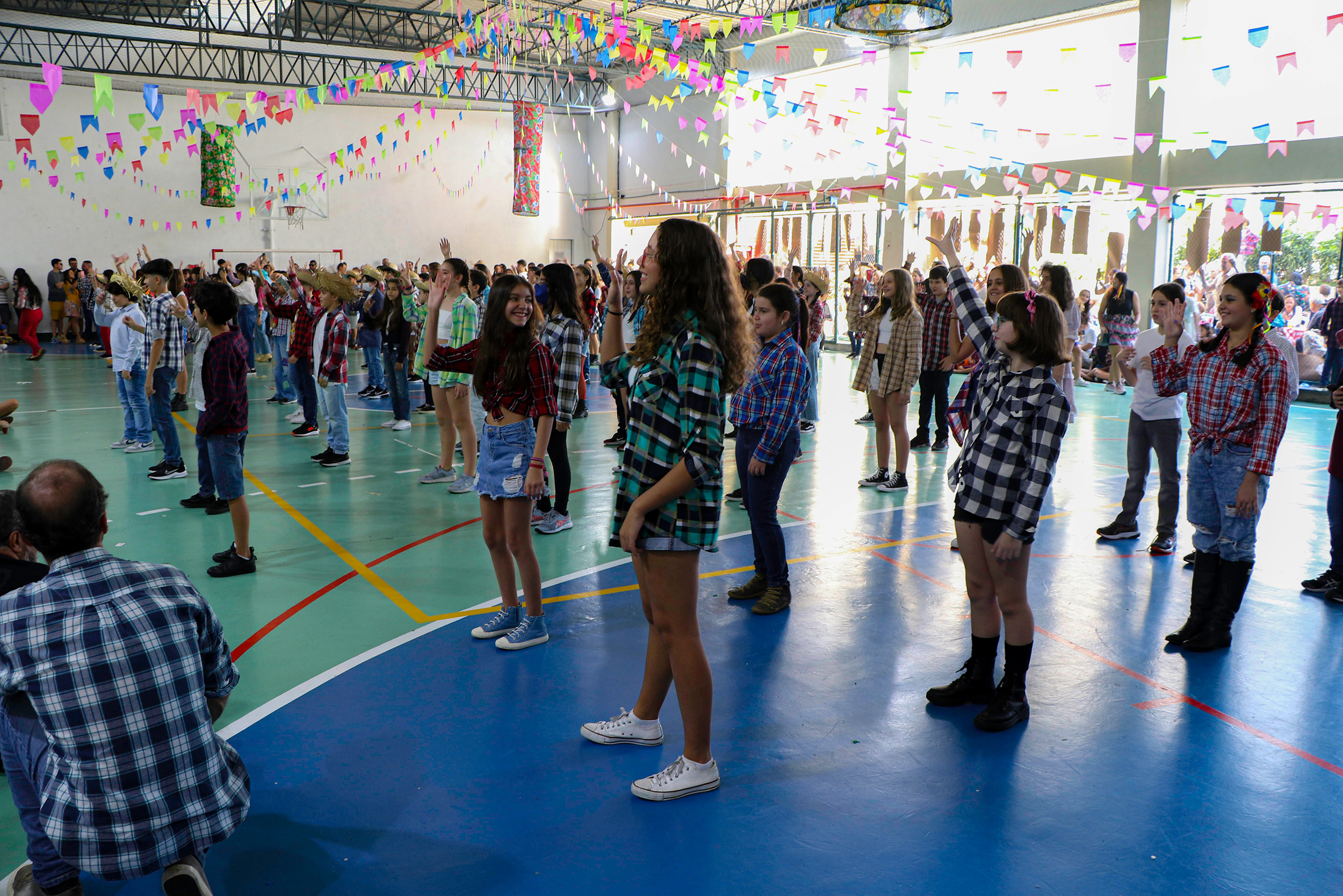 O 6º, 7º e 8° ano se apresentaram com músicas típicas de festa junina, dando um show no figurino e animação. Já do 9º ano à 3ª série do Ensino Médio, a quadrilha tradicional se fez presente com muitos anarriês, “olha a cobra” e, o casamento com muita confusão, feito pela 3ª série do Ensino Médio. Mas tudo terminou bem com o coro dos alunos dizendo: “eu não vou embora”!