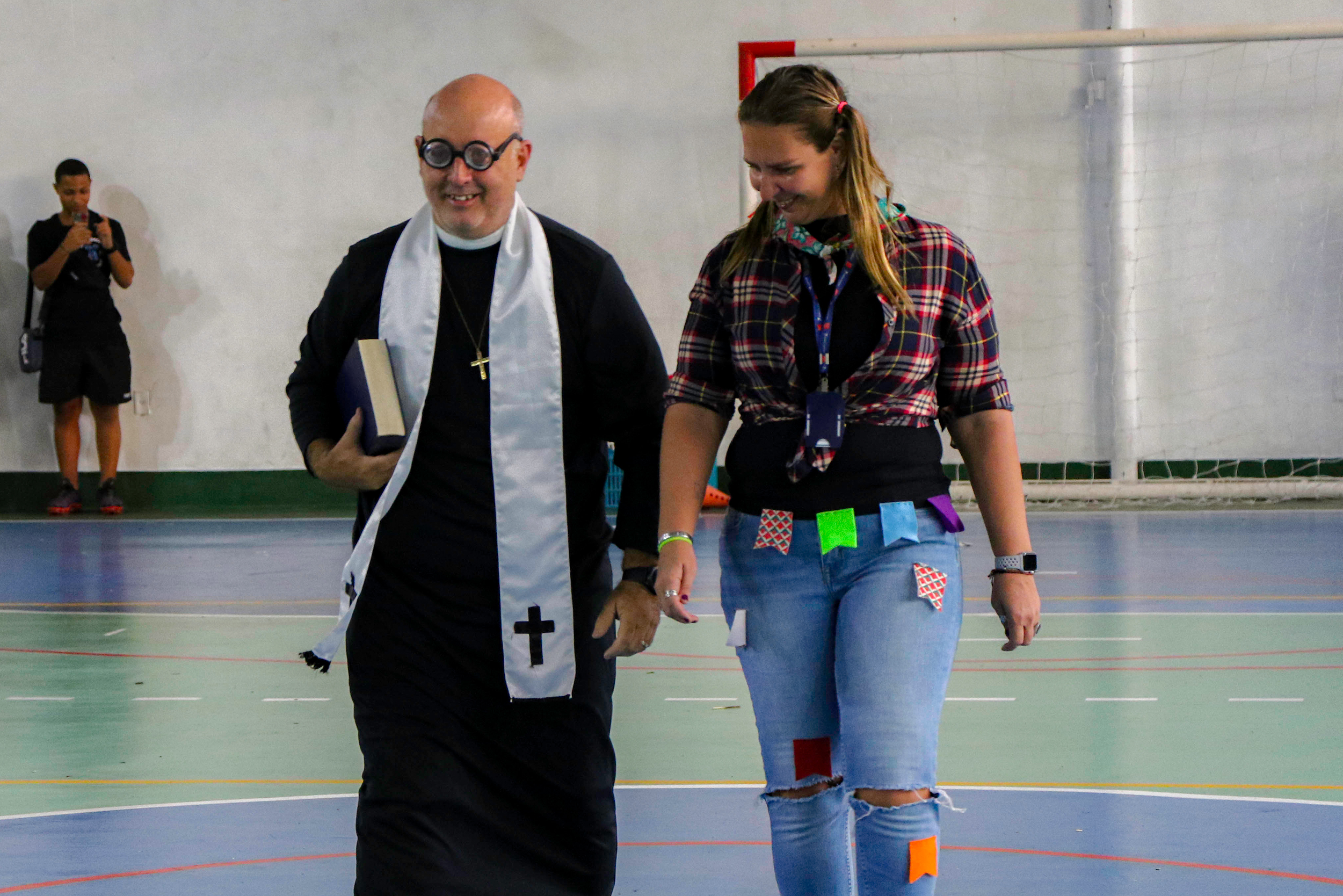 O professor e orientador STEAM, ”, Ricardo Viz, faz o papel de “padre” há alguns anos e relata: “Depois do tempo de isolamento, o Arraiá aconteceu em um clima de felicidade e animação. É sempre bom poder rever ex-alunos, principalmente os que que não puderam participar na época da pandemia”.