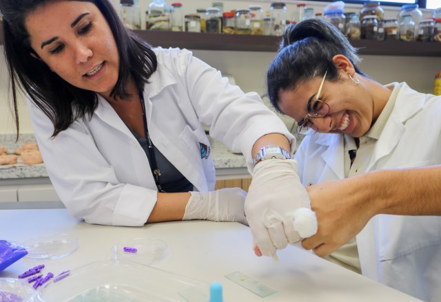 A aluna Sara Borges, da 3M1, conta: “Gostei muito de visualizar o processo e ver o sangue aglutinar. Sair da sala de aula e ir para o Laboratório é sempre uma oportunidade entrar em contato com o aprendizado de forma mais profunda”. Já Júlia Dantas, da 3M2, observa: “Foi muito interessante ver o que realmente acontece no RH positivo e negativo. Aprender assim cativa mais para o tema. Não é em toda disciplina que conseguimos ver o fenômeno acontecer na nossa frente”.
