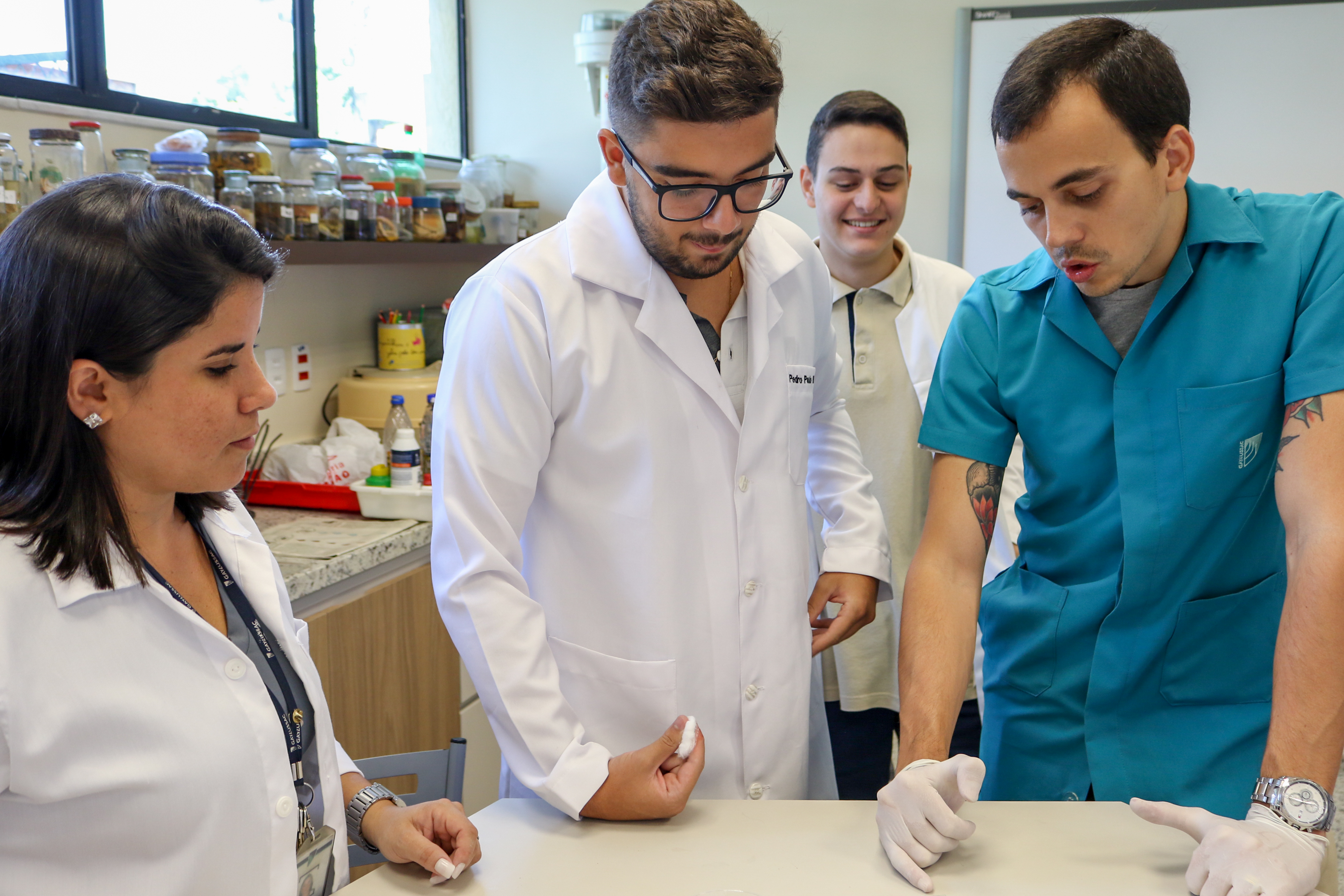 Marcus explica: “Cada aluno tirou uma gota de sangue e analisamos a presença ou ausência de proteínas nas hemácias. De acordo com os reagentes, podemos ter certeza do tipo sanguíneo de cada um. É importante que eles visualizem o estudo teórico, até por que em alguns exames de vestibular as questões simulam a reação das lâminas de laboratório e eles saem na frente por terem visto na prática”.