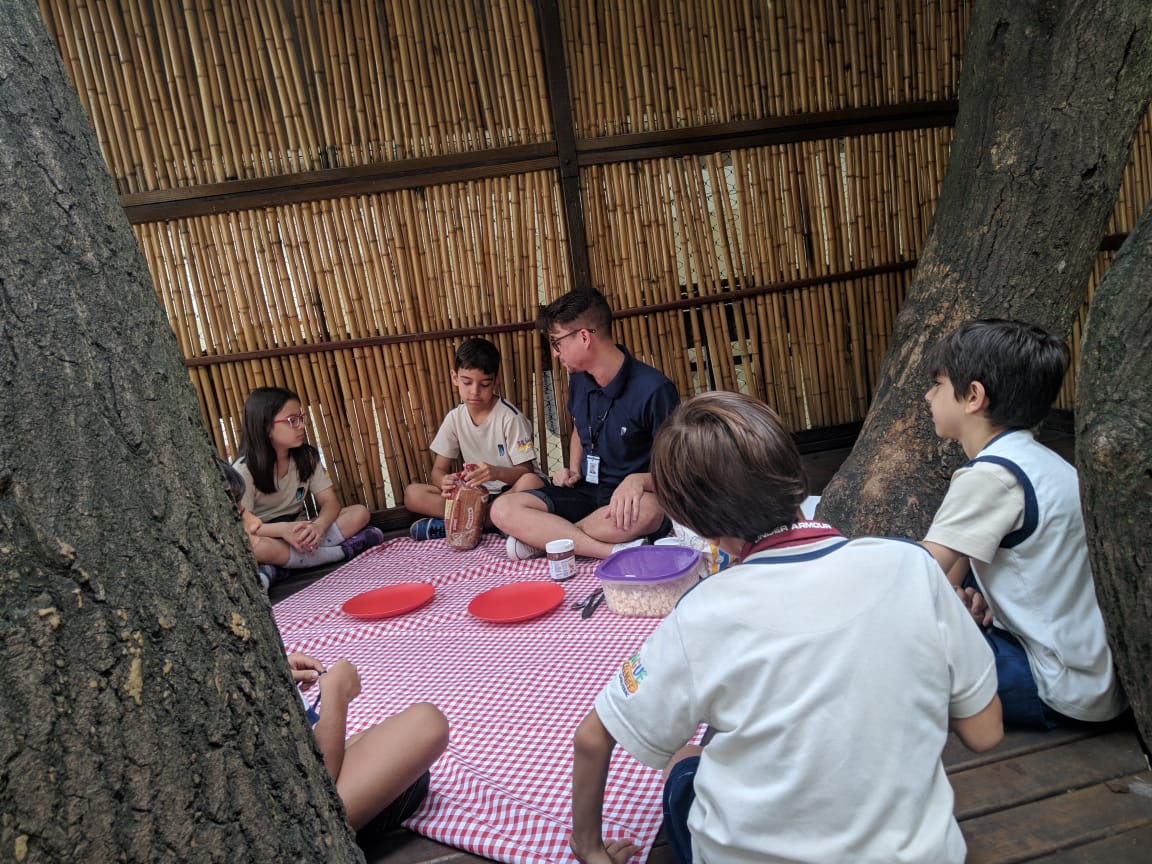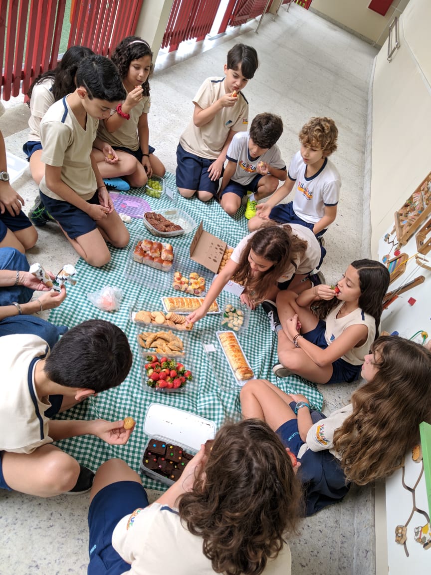 Distribuídos pela casa da árvore, pátio e quadra, os alunos celebraram o dia com um delicioso brunch e brincadeiras. A Coordenadora do Projeto Bilíngue, Luísa Calmon, explica: “Nesses momentos trabalhamos com eles a integração, o espírito coletivo e o que é fazer parte de uma turma. É muito importante que o aprendizado vá além do vocabulário”.