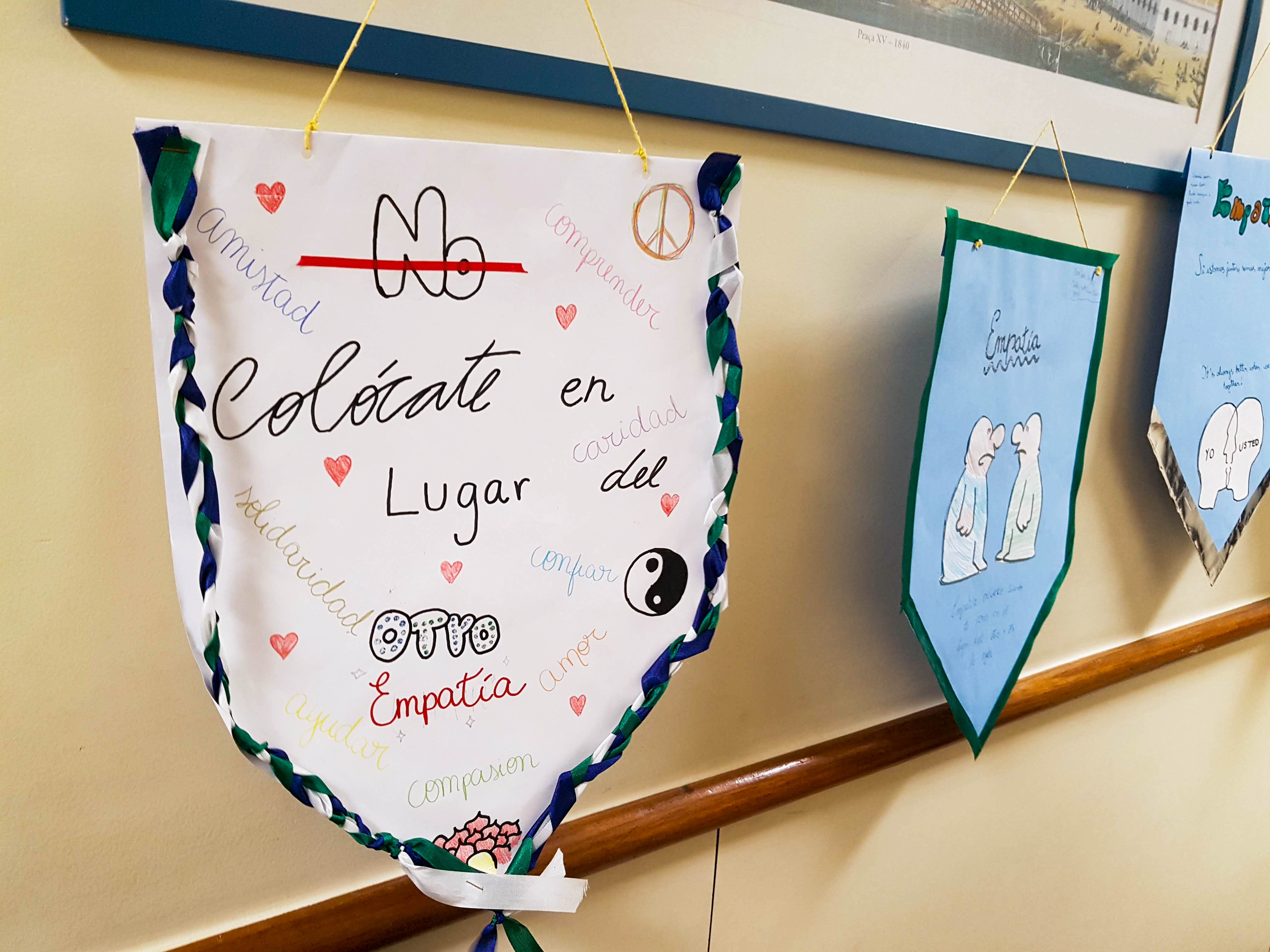 Agrupamento de ideias sobre o tema, apresentação do vídeo “O poder da Empatia”, dinâmicas de grupo e a confecção das “Flâmulas da Empatia”, foram algumas das atividades desenvolvidas. A atividade realizada pelas professoras Rosana Devisate, de Língua Espanhola, e Beatriz Fernandes, de Língua Inglesa, foi composta por três encontros com as turmas.