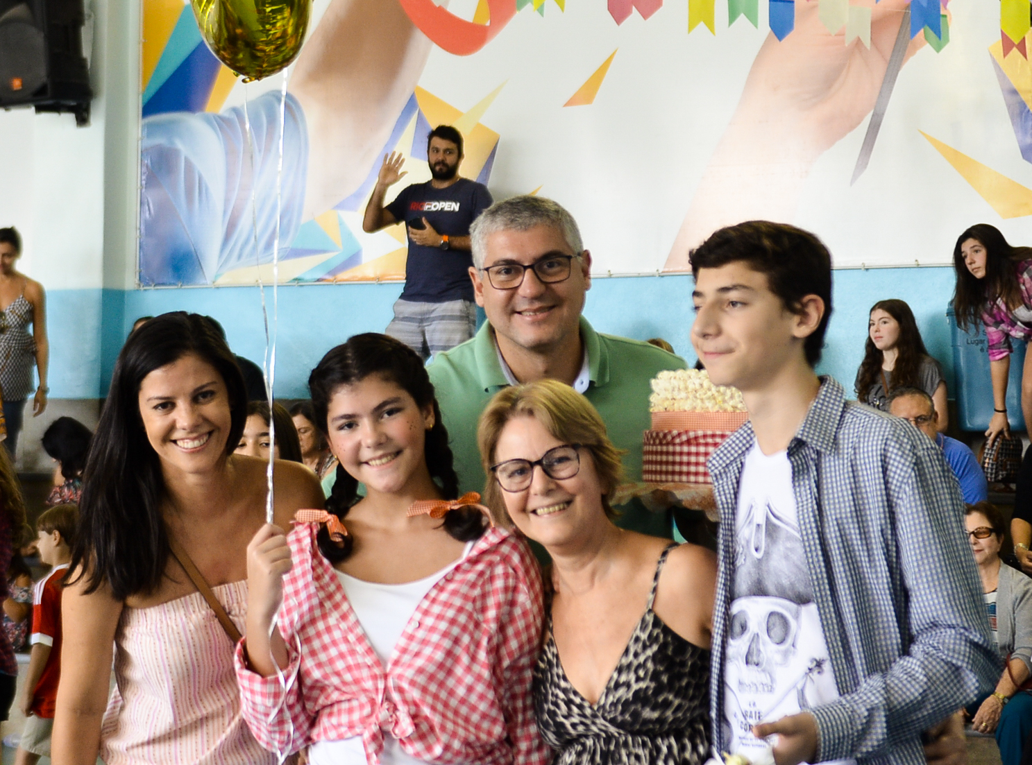 Os pais da aluna Giovana Tilhe do 8º ano, aproveitaram a festa para lançar um “parabéns pra você” para a filha que completava 13 anos. Frequentadores assíduos do nosso Arraiá, contam com alegria: “Participamos do Arraiá desde que a Giovana entrou no colégio, no maternal. Acho o maior barato porque tem muita coisa boa na festa: todos brincam, confraternizam… é sempre muito bom”.