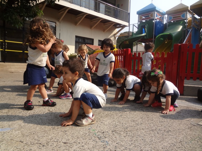 Em uma volta pela escola, os alunos exploraram o toque aprendendo o áspero, o liso, o macio e o duro em atividades diversificadas capazes de proporcionar aos pequenos a exploração do mundo em todas as suas sensações e formas. Eles sentiram a textura lisa da parede do pátio, a textura áspera do chão e também utilizaram a caixa-sensorial para explorar objetos variados.
