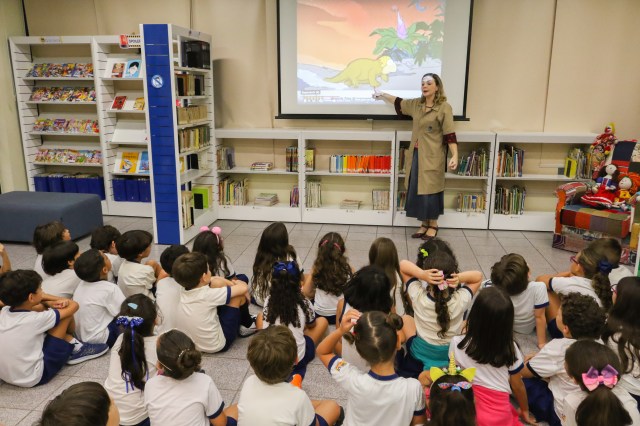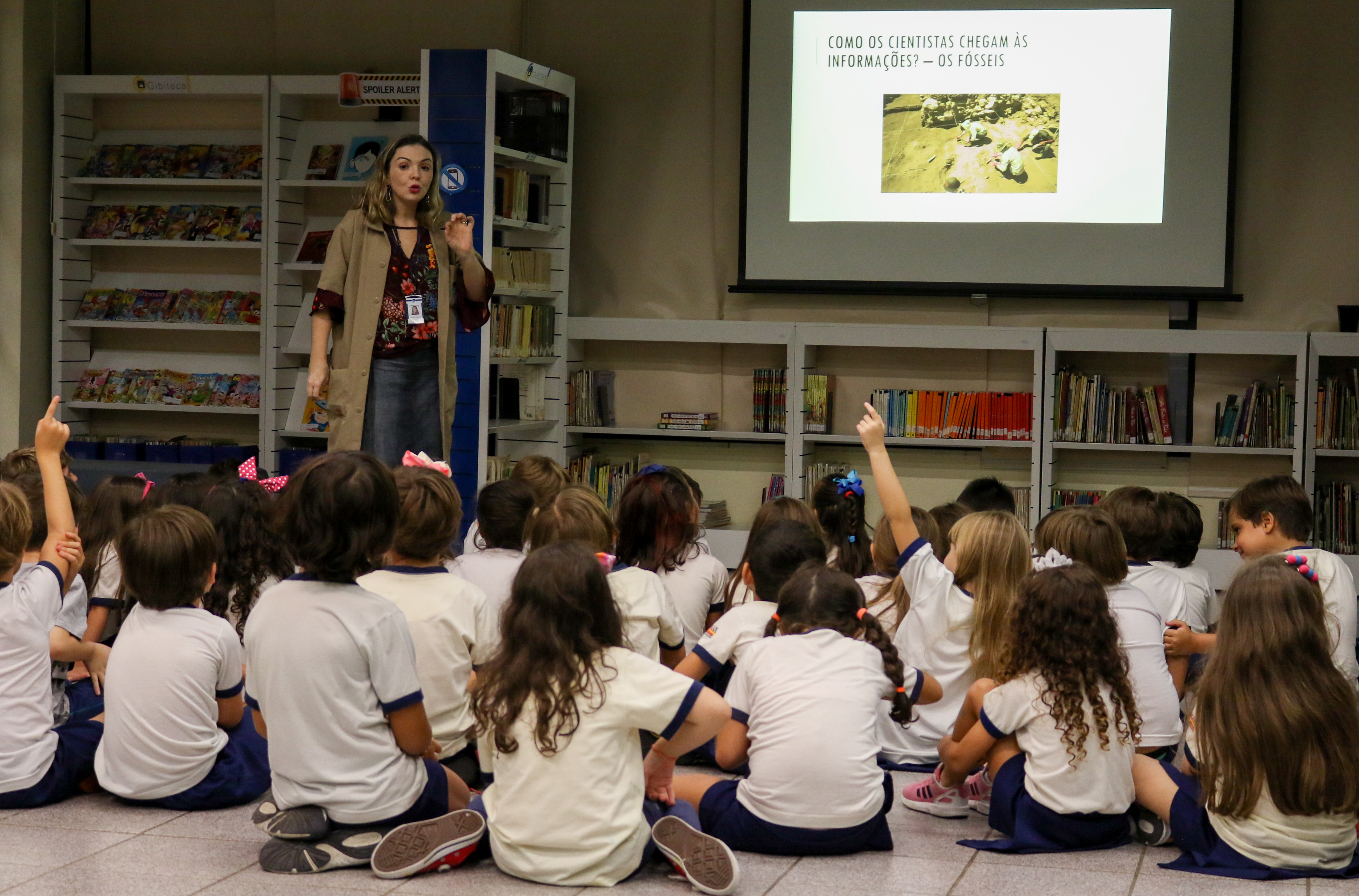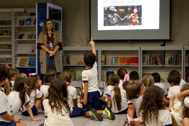 Como surgiu o mundo e a humanidade? Quem são nossos ancestrais? Para onde vamos? As turmas do 1º ano do Ensino Fundamental deram o pontapé inicial no Clube de Pesquisa de 2019, um “Um ZOOM na Humanidade”. Por isso, foram até a Biblioteca Sylvia Orthof e conheceram a professora de História do 6º ano, Priscila Aquino, que explicou um pouco aos pequenos sobre o evolucionismo, contou sobre as pesquisas de Darwin e os achados arqueológicos dos primeiros hominídeos, como Lucy.