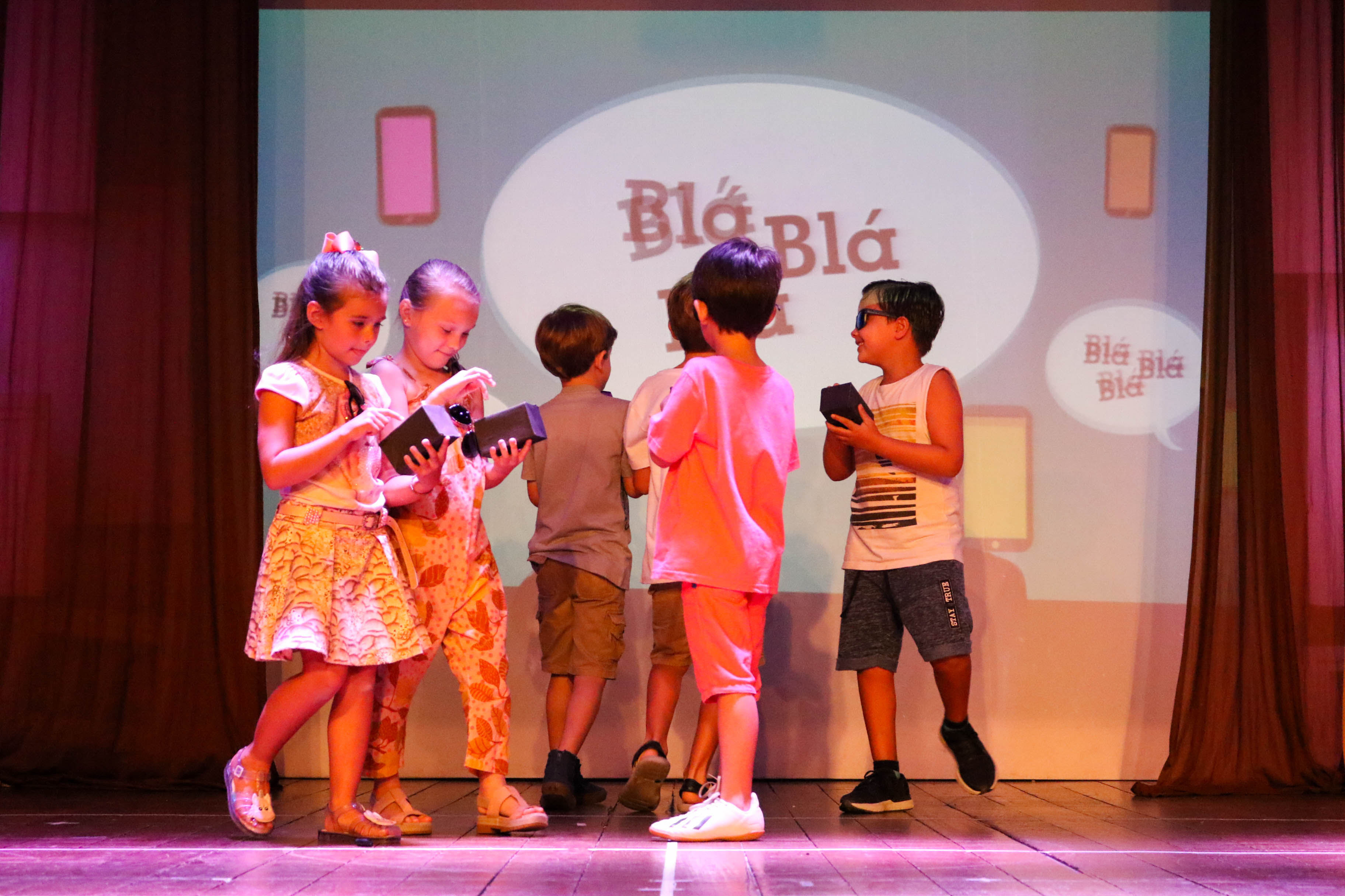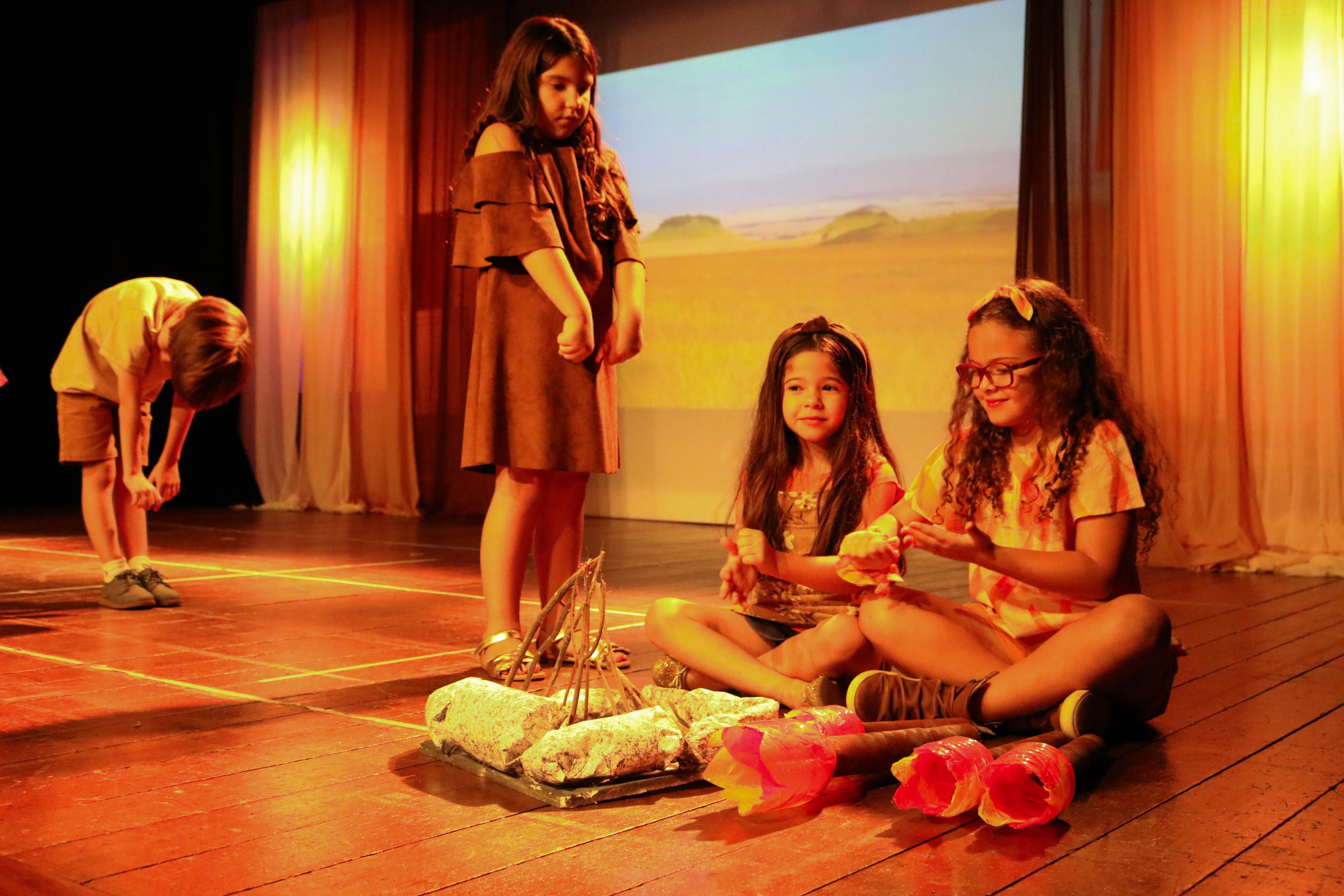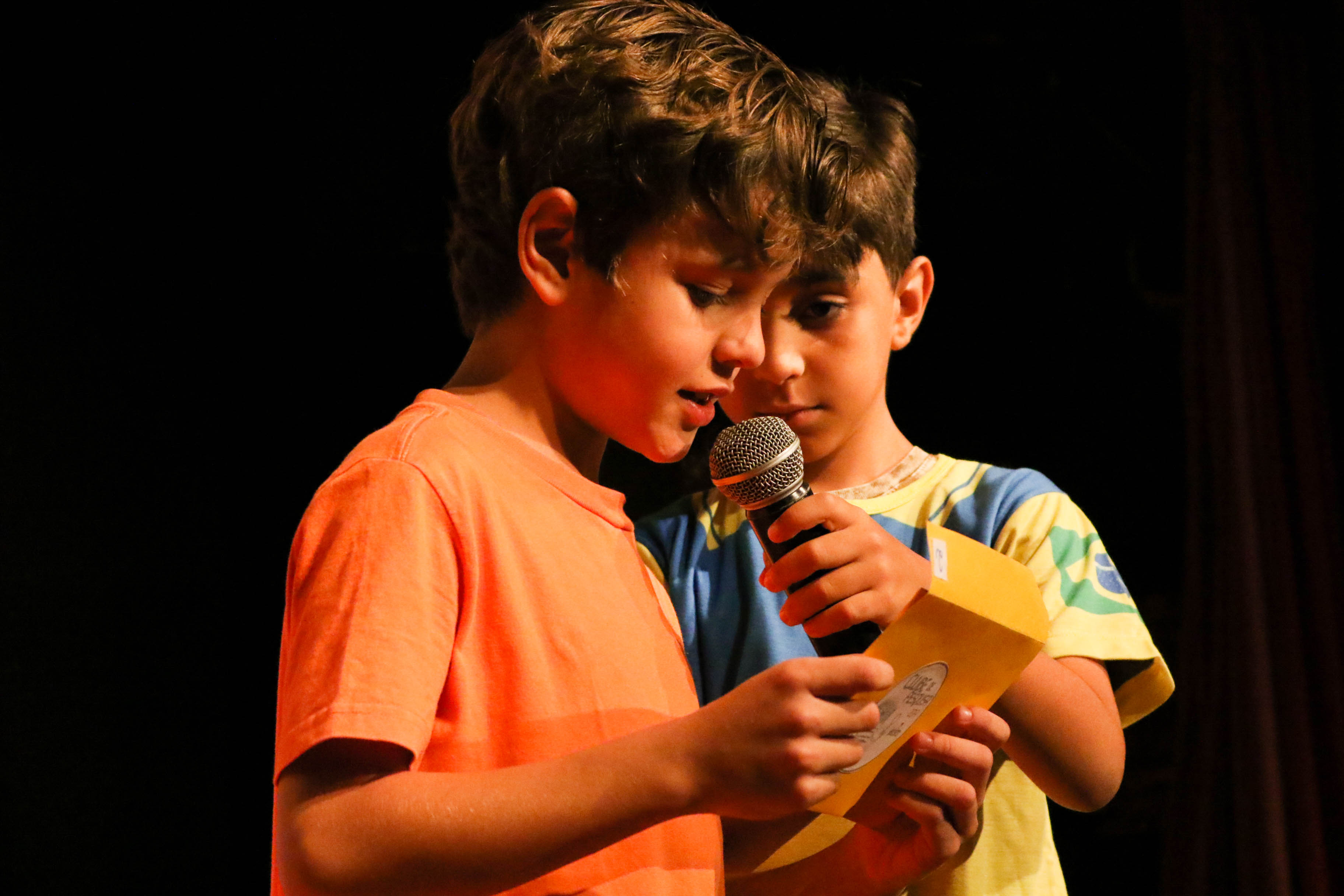 “E vocês? O que deixarão para o homem do futuro?”. Com essa instigante pergunta, o 1º ano do Ensino Fundamental finalizou sua apresentação de culminância do Clube de Pesquisa “Um zoom na Humanidade”, no Teatro GayLussac. Durante todo ano, os alunos pesquisaram a evolução do homem primitivo ao moderno, passando pela descoberta do fogo, da agricultura, a invenção da roda, a construção de ferramentas. A mensagem que fica é que as novas técnicas que levaram ao aprimoramento da tecnologia até chegar aos celulares e carros não podem nos fazer esquecer do que importa: as interações humanas!