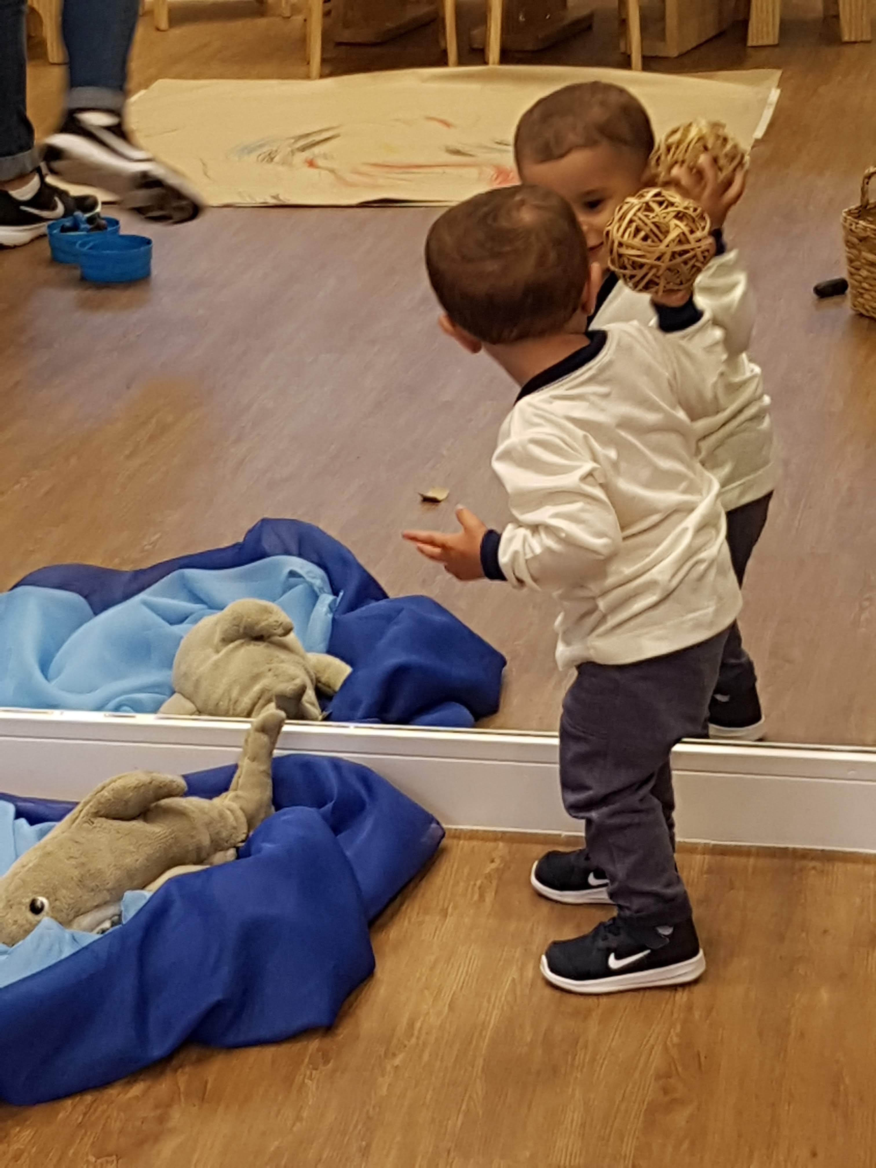 Com um ambiente acolhedor, onde cada cantinho foi pensado com foco na infância, as crianças encontram uma arquitetura e arrumação de sala que estimulam seu imaginário: o espelho, que é auxílio na distinção entre o eu e o outro; a casa com prateleiras que ajudam a arrumar os brinquedos na altura do olhar infantil; a árvore, que ampara o som; o piso de madeira, que confere à sala um ar intimista. É nesse espaço bucólico que recebemos nossa primeira turma de Maternal 1.