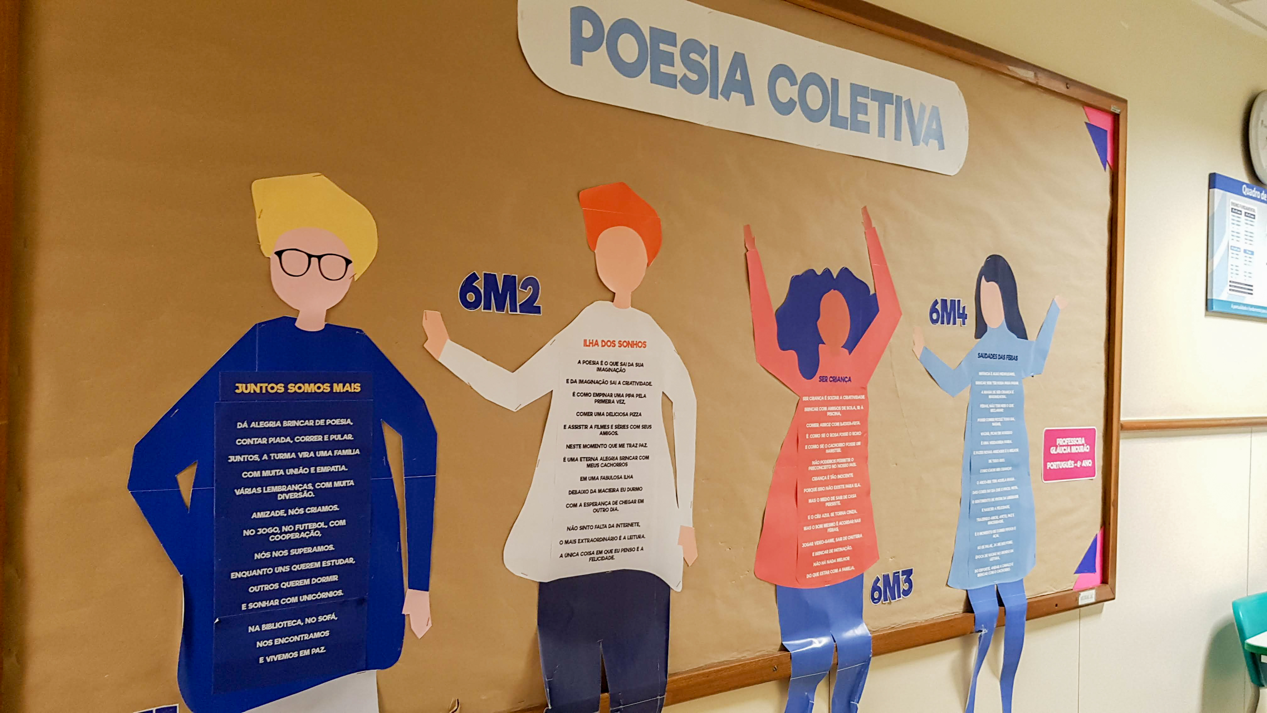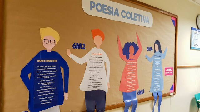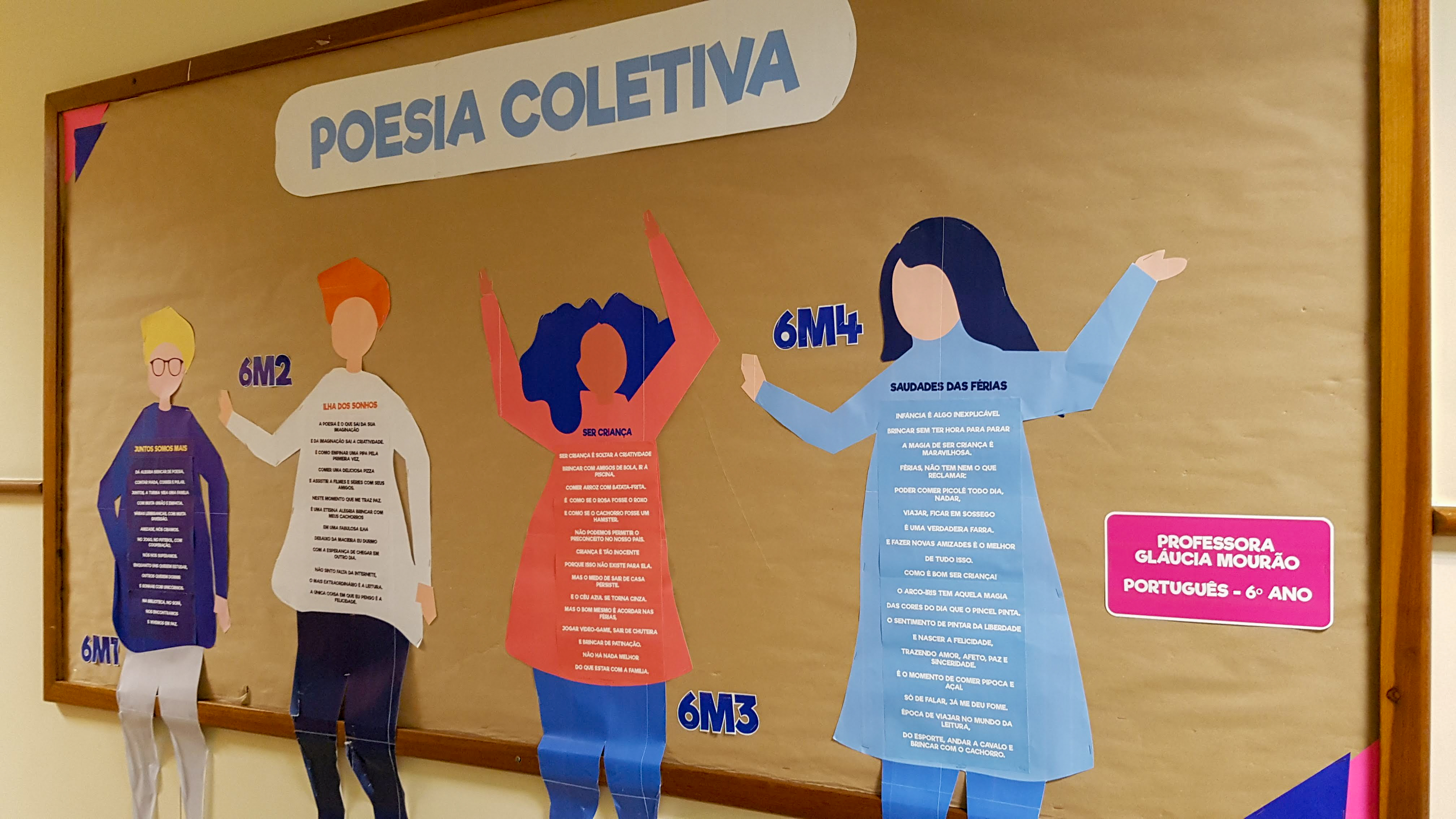 Se poesia é brincar com palavras, como disse José Paulo Paes, escrever em versos é tão simples quanto brincar de bola, pique e pião. A arte de criar textos em versos sugere emoções combinando sons, ritmos e significados. Por isso, buscando diminuir o medo e a dificuldade de escrita e interpretação da nova linguagem, a professora de Língua Portuguesa, Gláucia Mourão, construiu junto aos alunos do 6º ano do Ensino Fundamental, poesias coletivas que representariam as turmas.