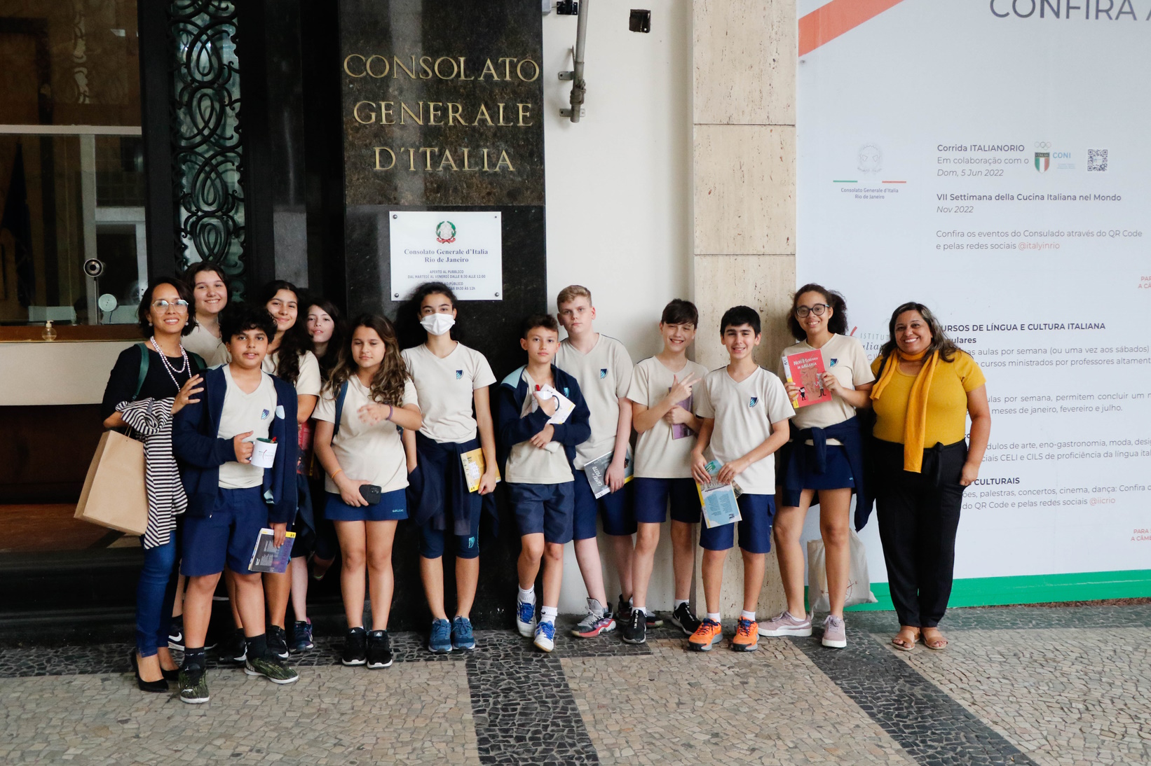 “Fomos recebidos pela equipe do Istituto Italiano di Cultura Riccardo Scafati, que apresentou os monumentos e cidades italianos através de um jogo. Em seguida, fomos ao Terrazzo Belvedere, onde fomos recebidos pelo Console Massimiliano Lacchini, que falou para os alunos sobre a função do cônsul no Rio de Janeiro. Por fim, visitamos o monumento da Teresa Cristina, imperatriz do Brasil, na piazza Italia. Os alunos leram, em comemoração ao bicentenário da independência do Brasil, um livro sobre ela, que era italiana e foi considerada a mãe dos brasileiros”, explica a professora de Italiano, Valéria Gama.