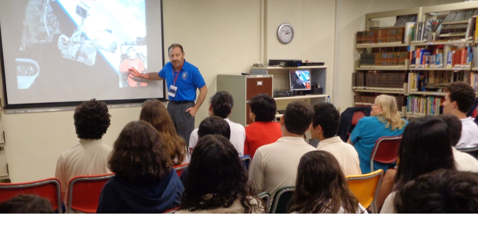 Conhecer um astronauta de verdade é um sonho de criança que foi realizado por um seleto grupo de alunos da High School Texas Tech, em novembro. Cumprindo uma rotina apertada, entre palestras no IME e na UFF, o decano da faculdade de Engenharia da TTU, Al Sacco Jr, veio ao GayLussac para falar aos alunos sobre os desafios do espaço sideral. Ele voou em 1995, na nave Columbia, na missão STS-73.