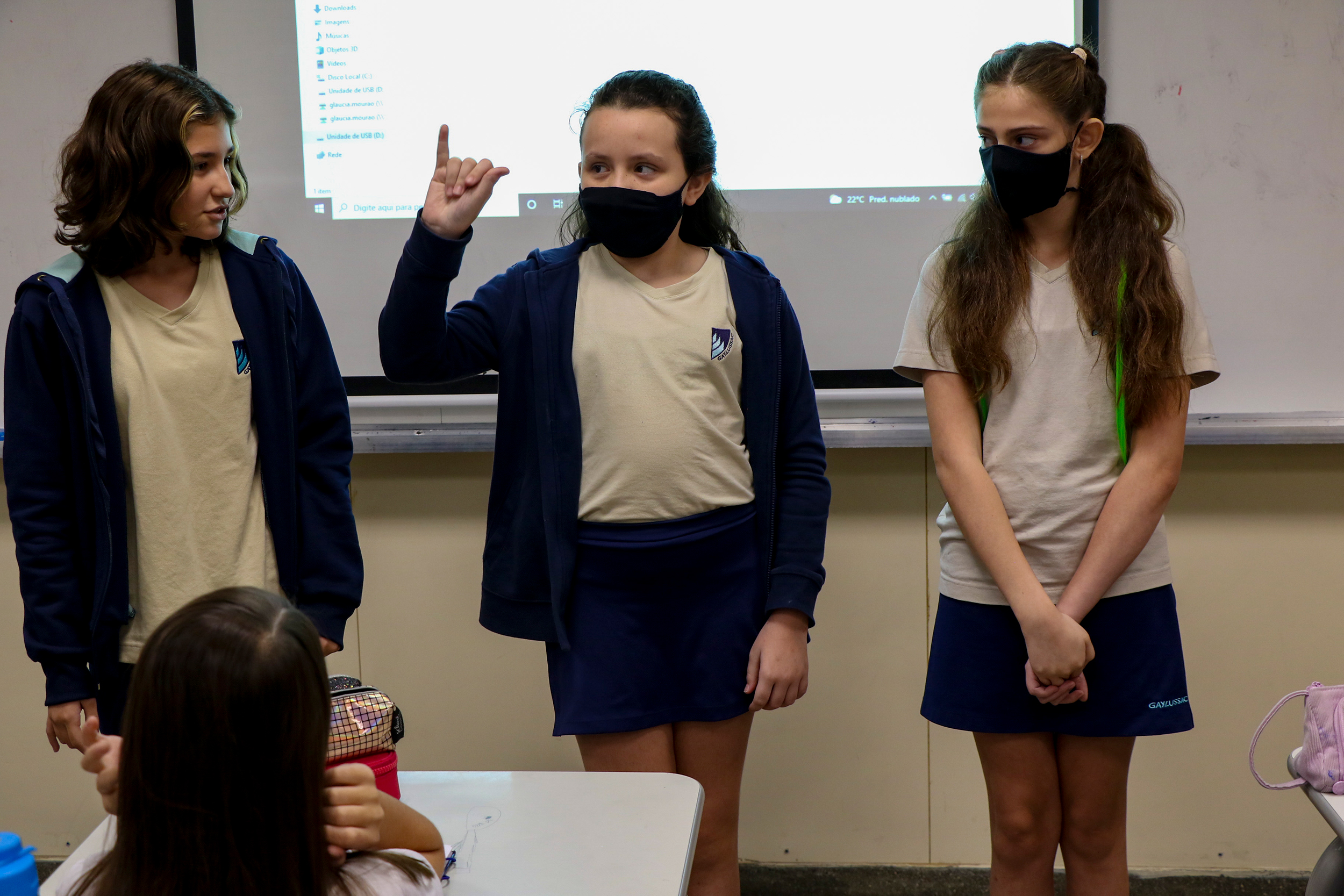 Sendo um projeto que une Português e Produção Textual, os alunos fizeram trabalhos de imersão no tema: “Pesquisamos instituições de apoio para que possamos nos tornar doadores e ajudar a quem precisa”, Flávio, Fernando e Luiz Eduardo, 6M3. Dentro do projeto, os alunos aprenderam e apresentaram um trabalho de linguagem de sinais.