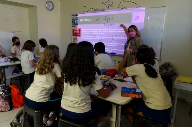 “Um dos conteúdos curriculares é linguagem verbal e não verbal. O livro escolhido conta a história de duas personagens utilizando de forma intercalada essas linguagens”, Gláucia Mourão, professora