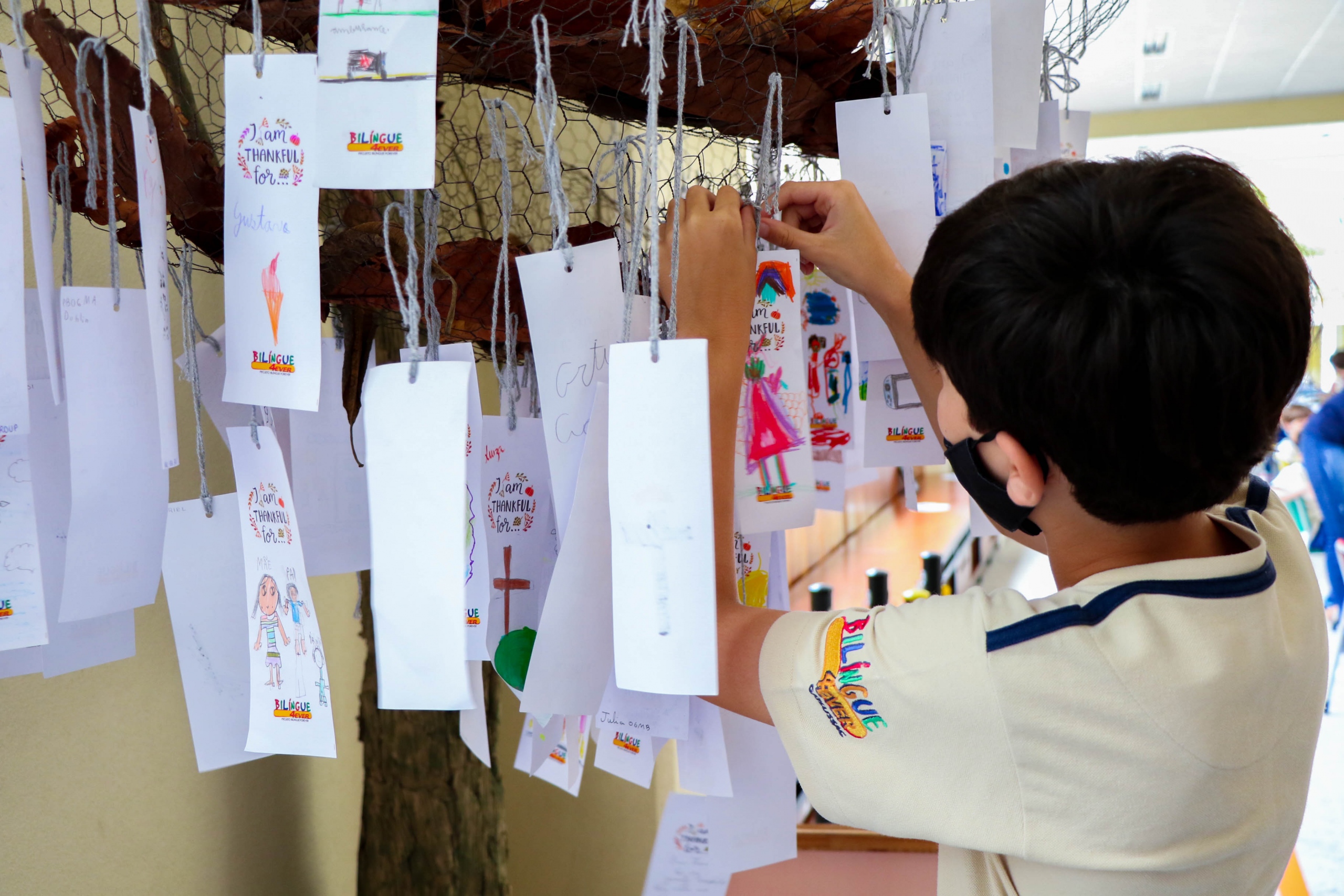 Assim, nossas turmas fizeram uma Árvore do Agradecimento e nelas amarraram bilhetes, desenhos, para simbolizar todos os motivos pelos quais é importante ser grato. O almoço foi especial e temático, seguindo a tradição do “Turkey Day”!